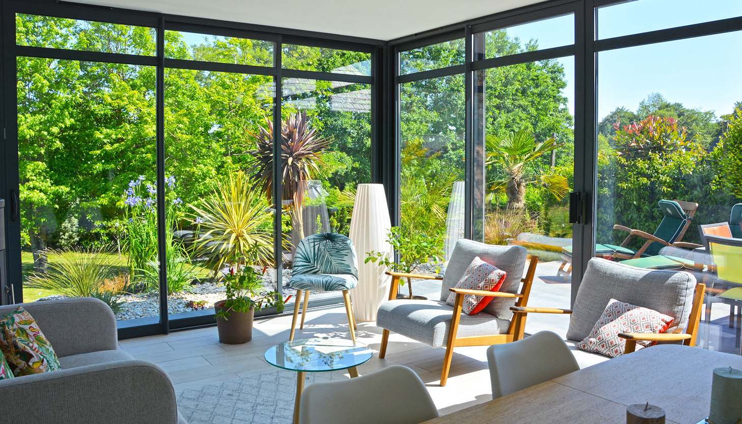 En todas estas viviendas prefabricadas predominan las grandes ventanas y puertas de cristal en las fachadas que permiten la entrada de luz solar.