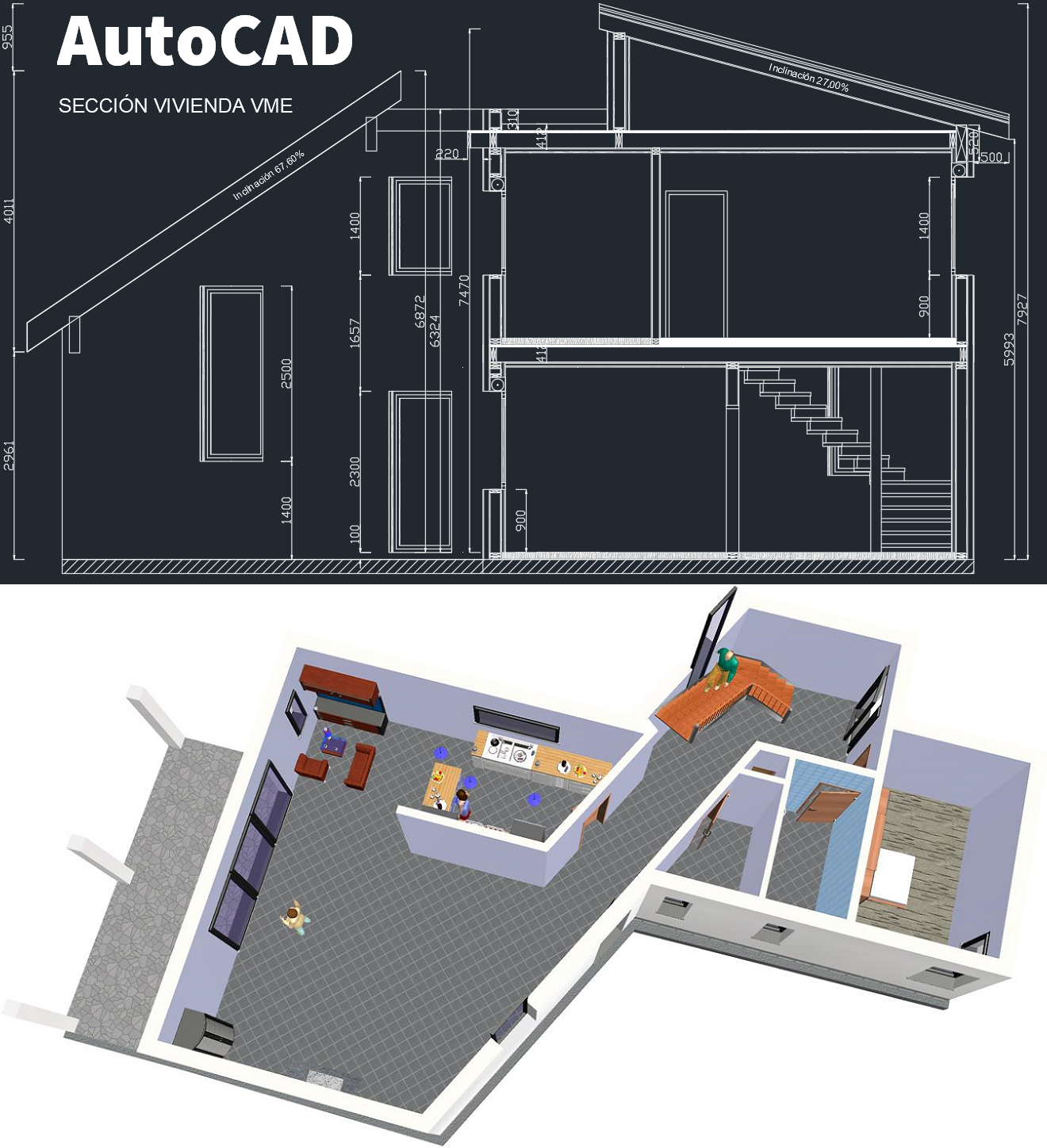 • Planos de la vivienda prefabricada y especificaciones técnicas en formato Dwg Autocad y PDF