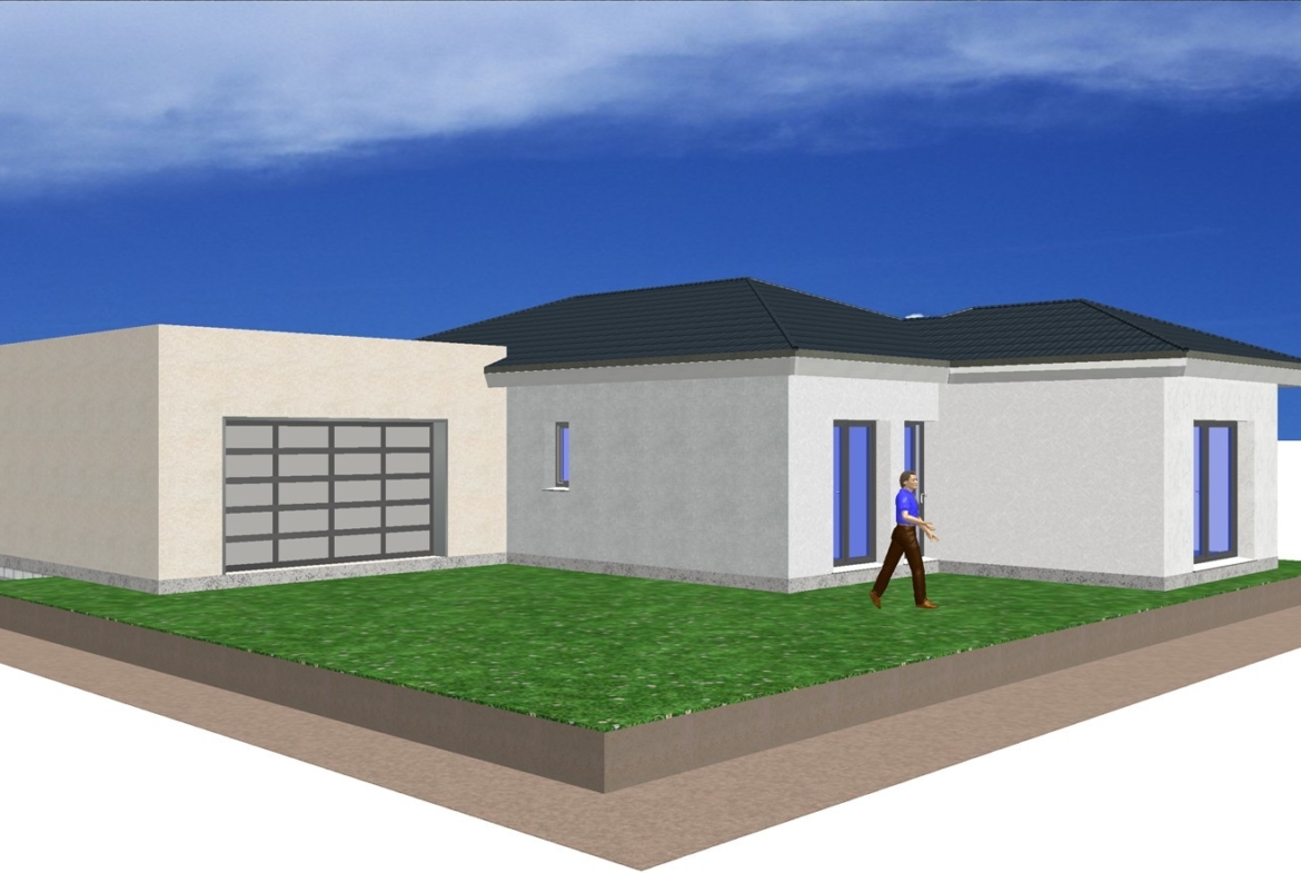 Construcción casa de 3 habitaciones y garaje doble acabadas con mortero de cemento y hormigón.