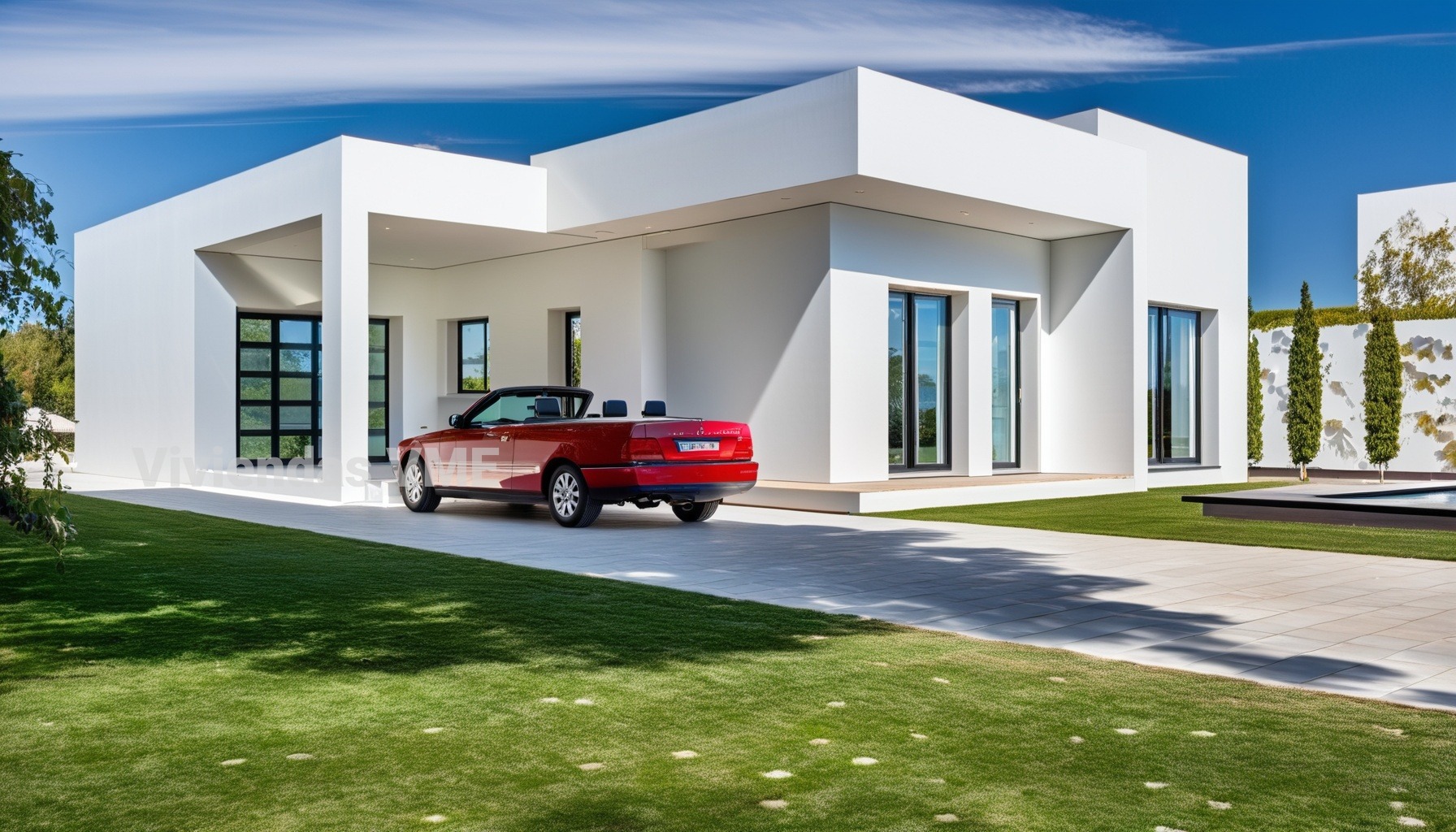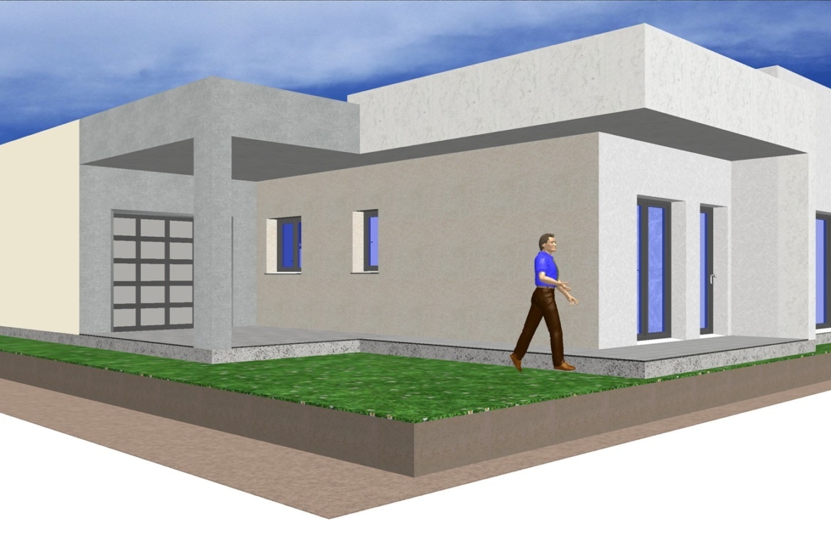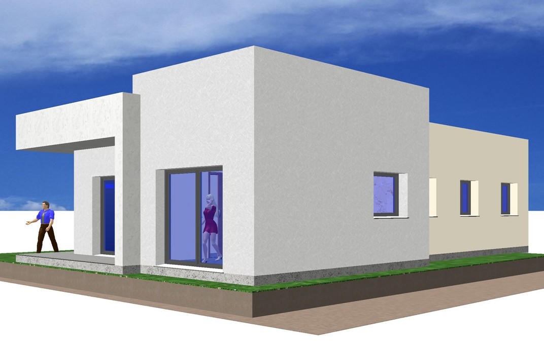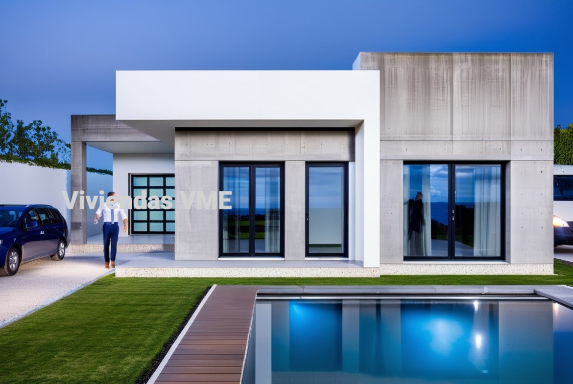 Vivienda prefabricada duradera con fachadas de hormigón y cemento color a elegir.