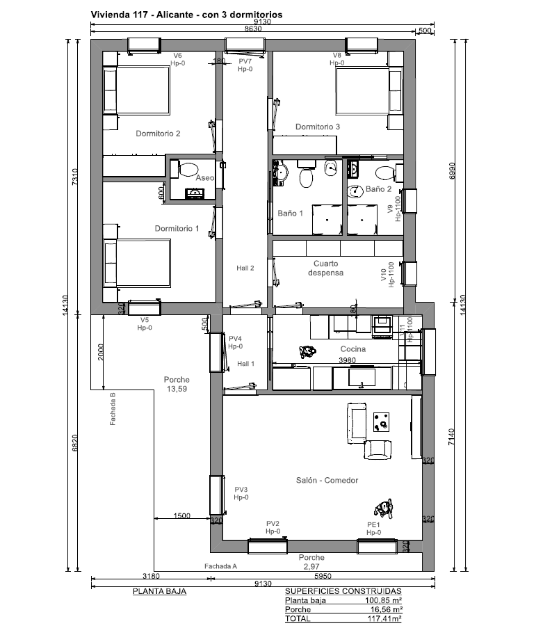 Casa moderna 3 dormitorios modelo Alicante 117 m2 de alta calidad con acabados en hormigón y cemento.