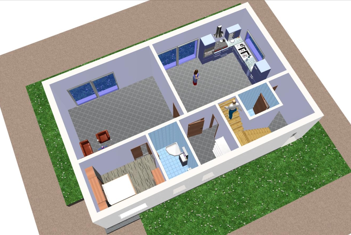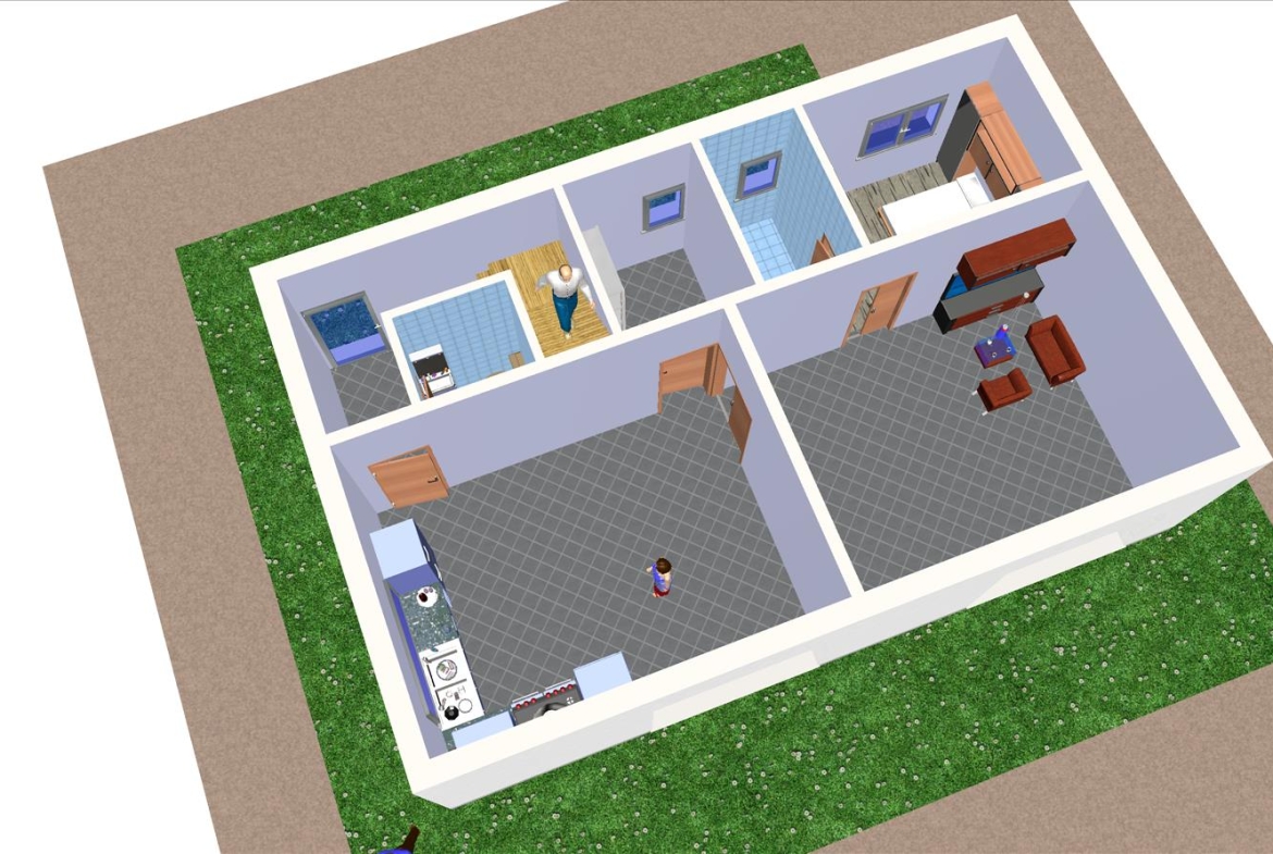 Una vivienda prefabricada moderna con diseño bioclimático que busca la mejor orientación en base al sol y la protección de los vientos dominantes.