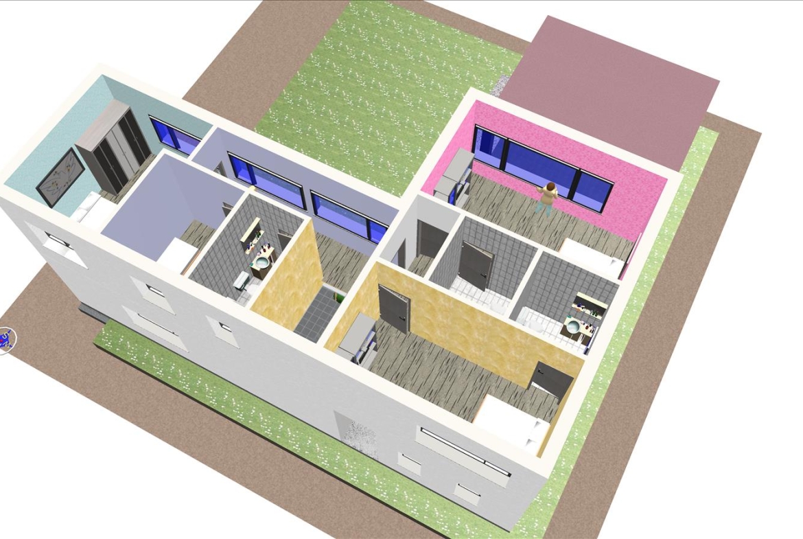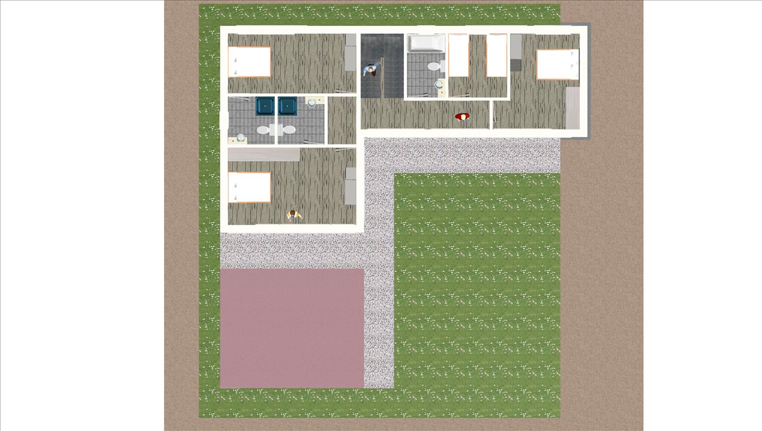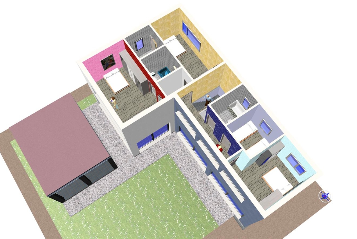 Casa prefabricada con la teja puesta, acabado final en fachadas de hormigón con sistema SATE y revestimiento en cemento coloreado.