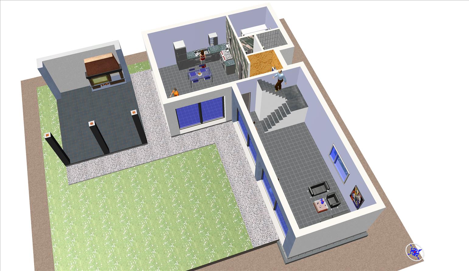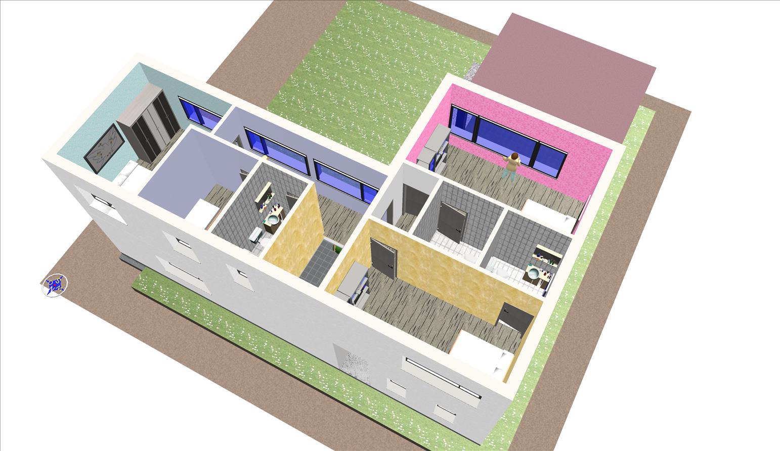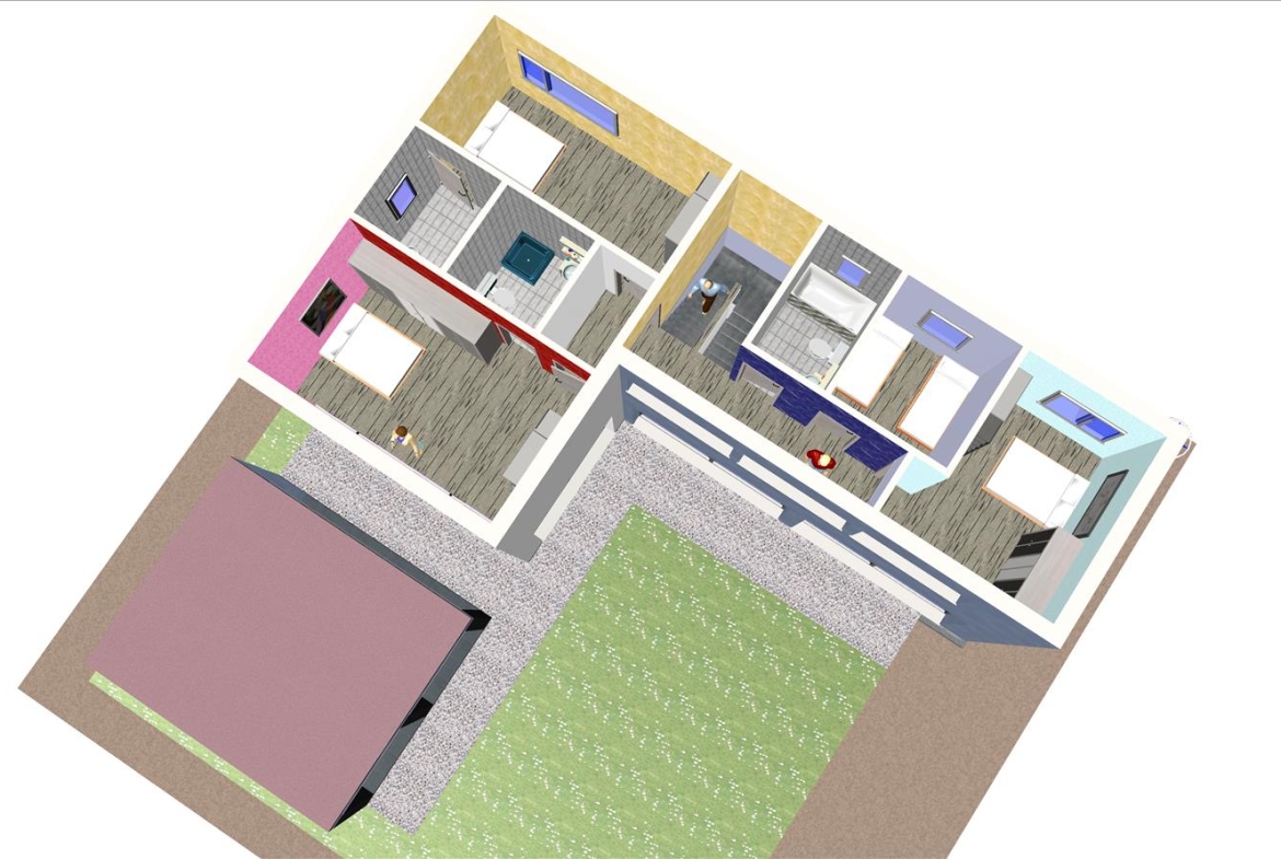 Casa prefabricada con la teja puesta, acabado final en fachadas de hormigón con sistema SATE y revestimiento en cemento coloreado.