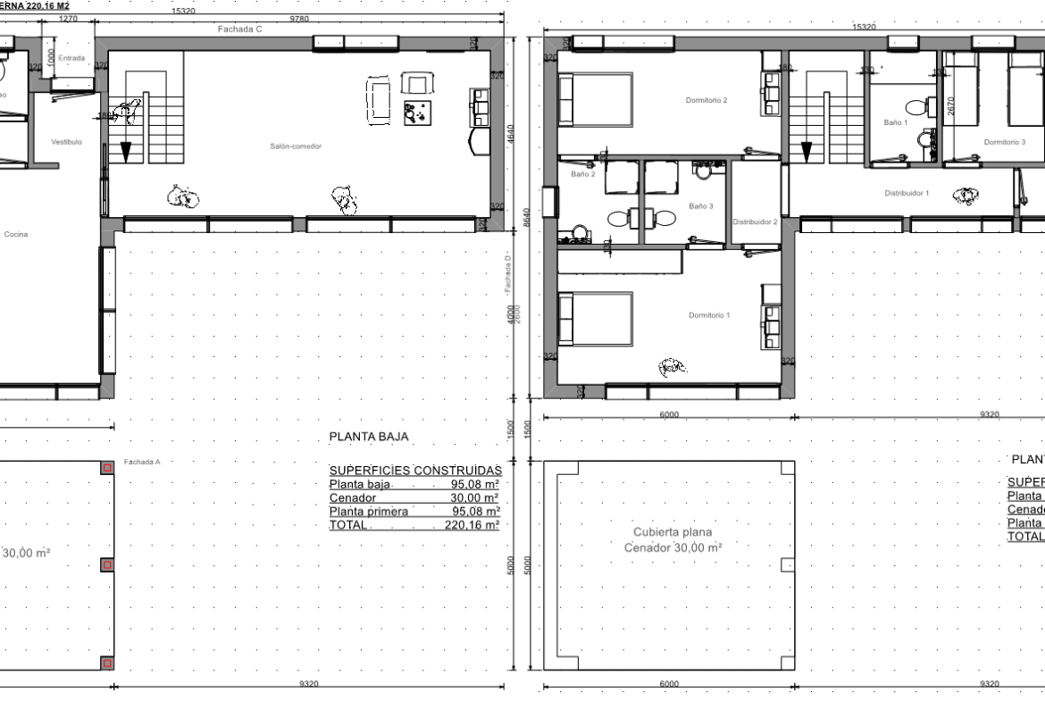 En la planta alta, un distribuidor, cuatro dormitorios y tres baños.