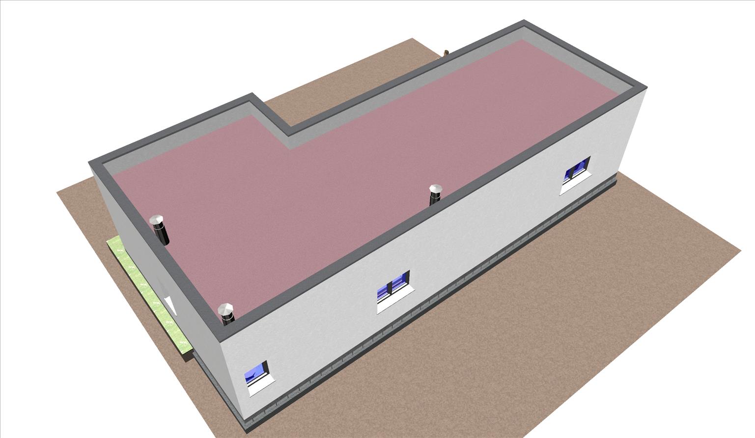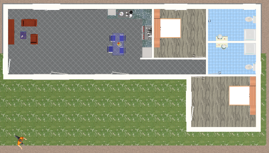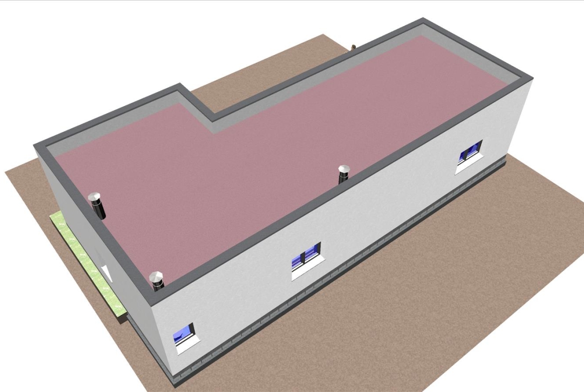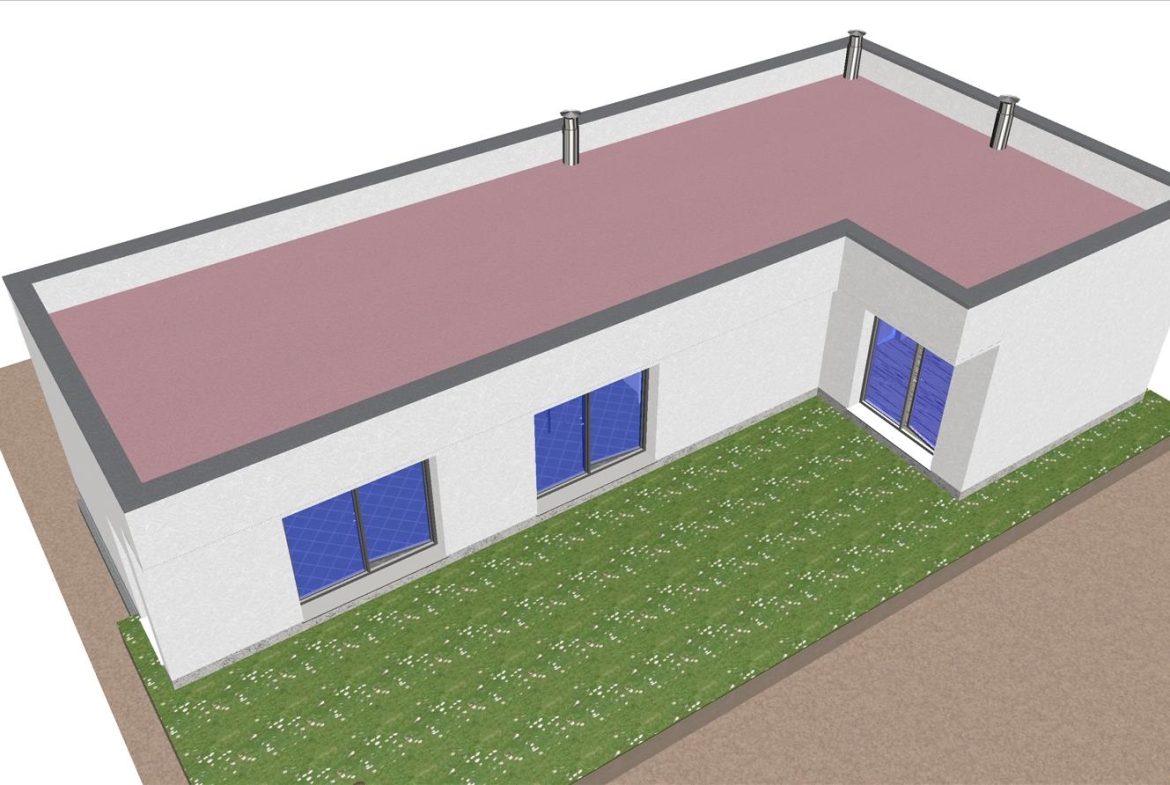Se trata de una casa con fachada de hormigón, moderna, prefabricada con un área común en un espacio abierto, 2 dormitorios y 2 baños.
