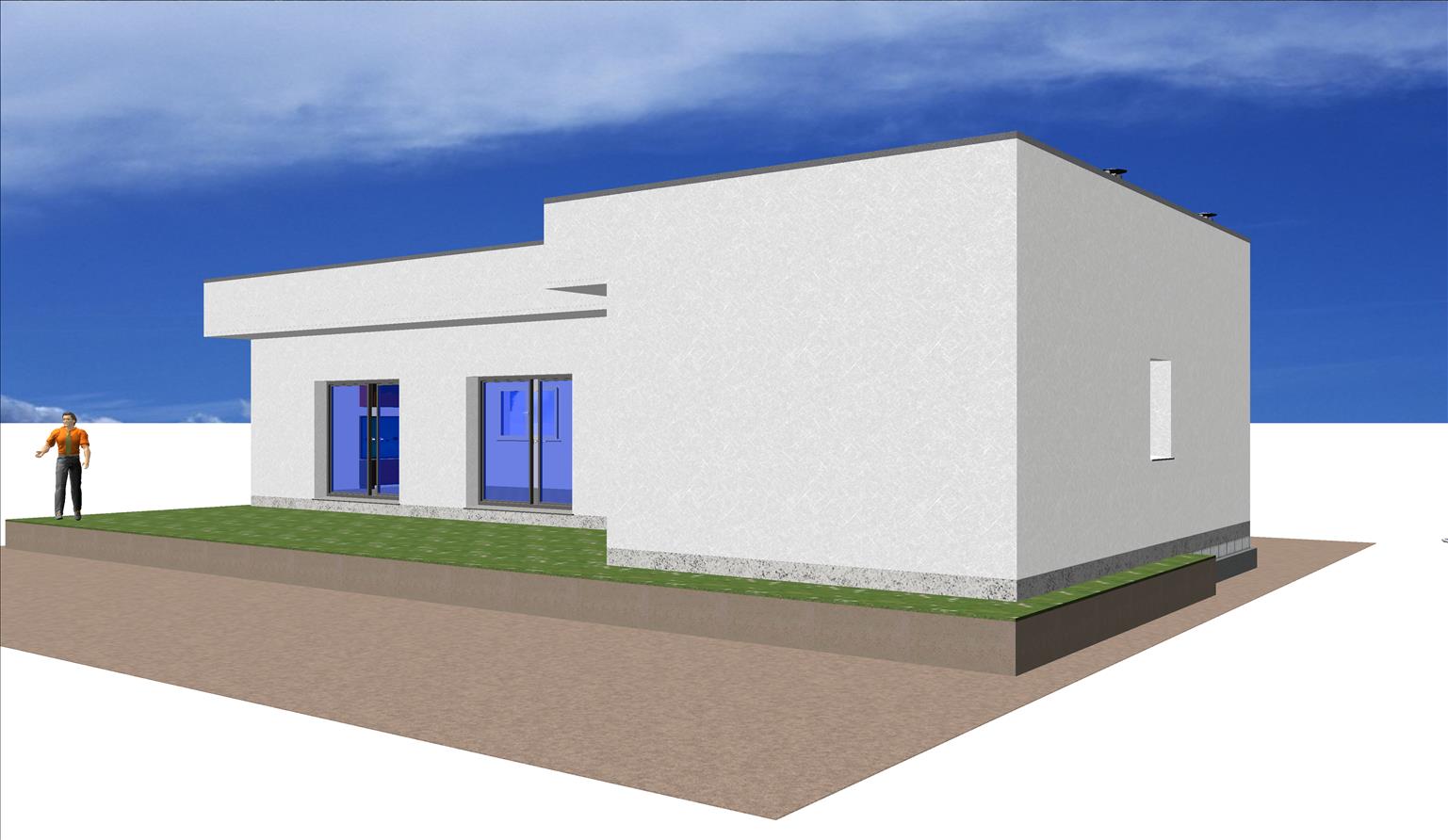 Casa moderna Valencia 104m2 se destaca la fachada de hormigón muy utilizado actualmente como material de acabado de construcción de casas prefabricadas modernas de alta calidad.