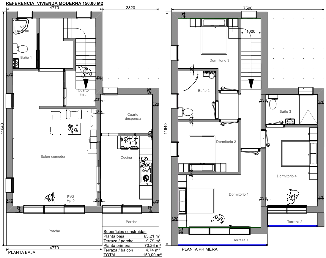 Casa prefabricada 150m2 construidos con 4 dormitorios.