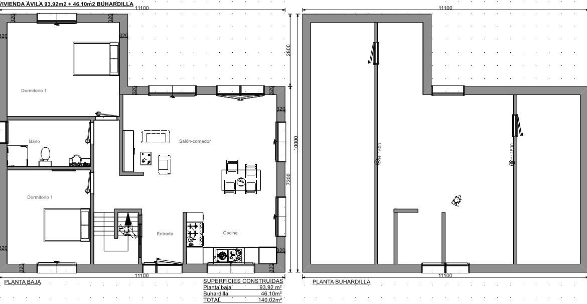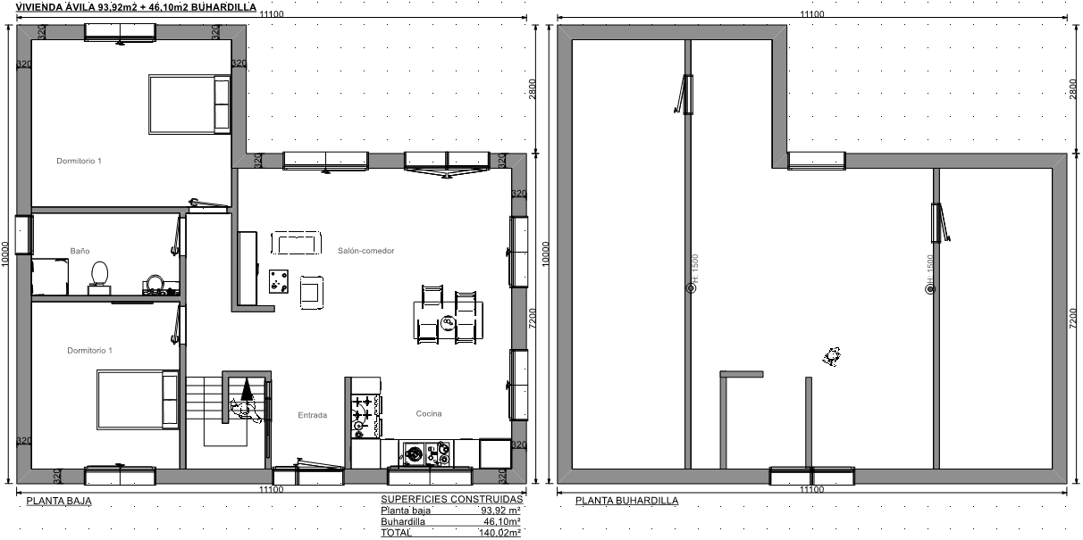Casa prefabricada Ávila es una vivienda acabada en hormigón de 2 dormitorios y 1 baño y una amplia buhardilla que se pueden utilizar para diversos fines, como dormitorio ó estudio.