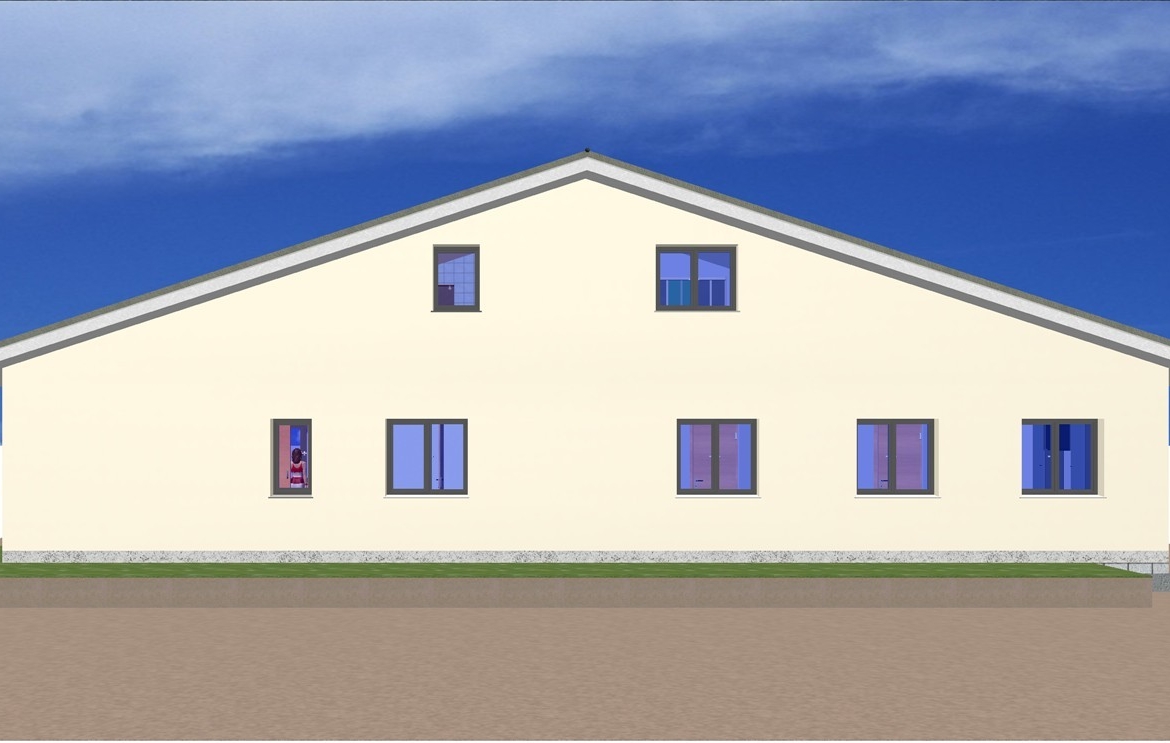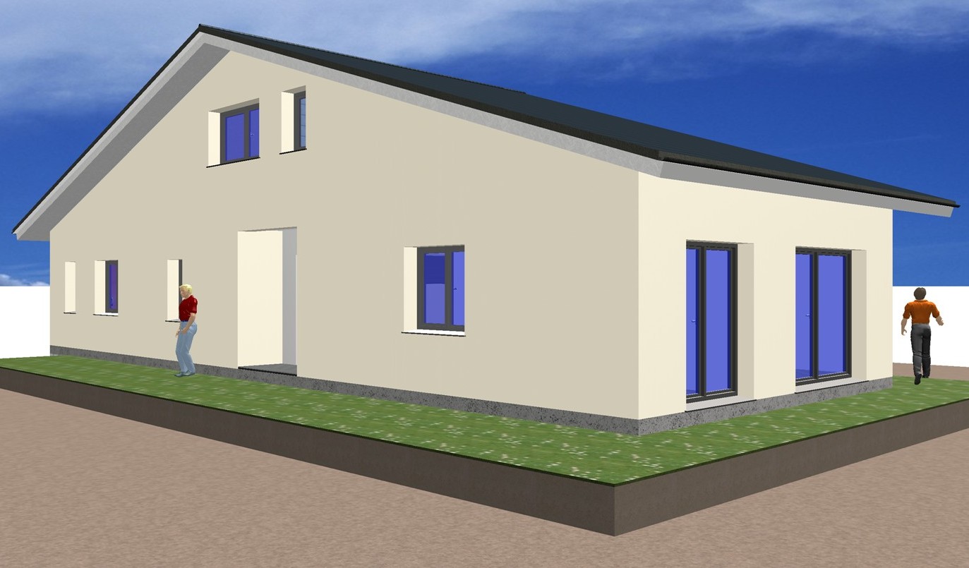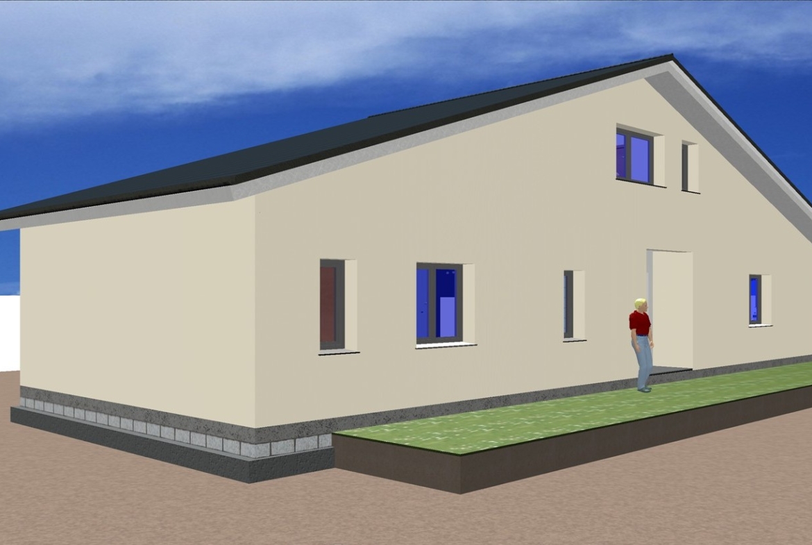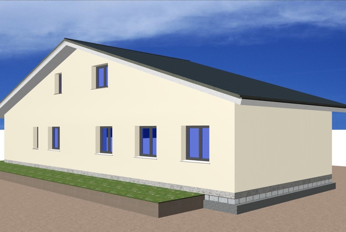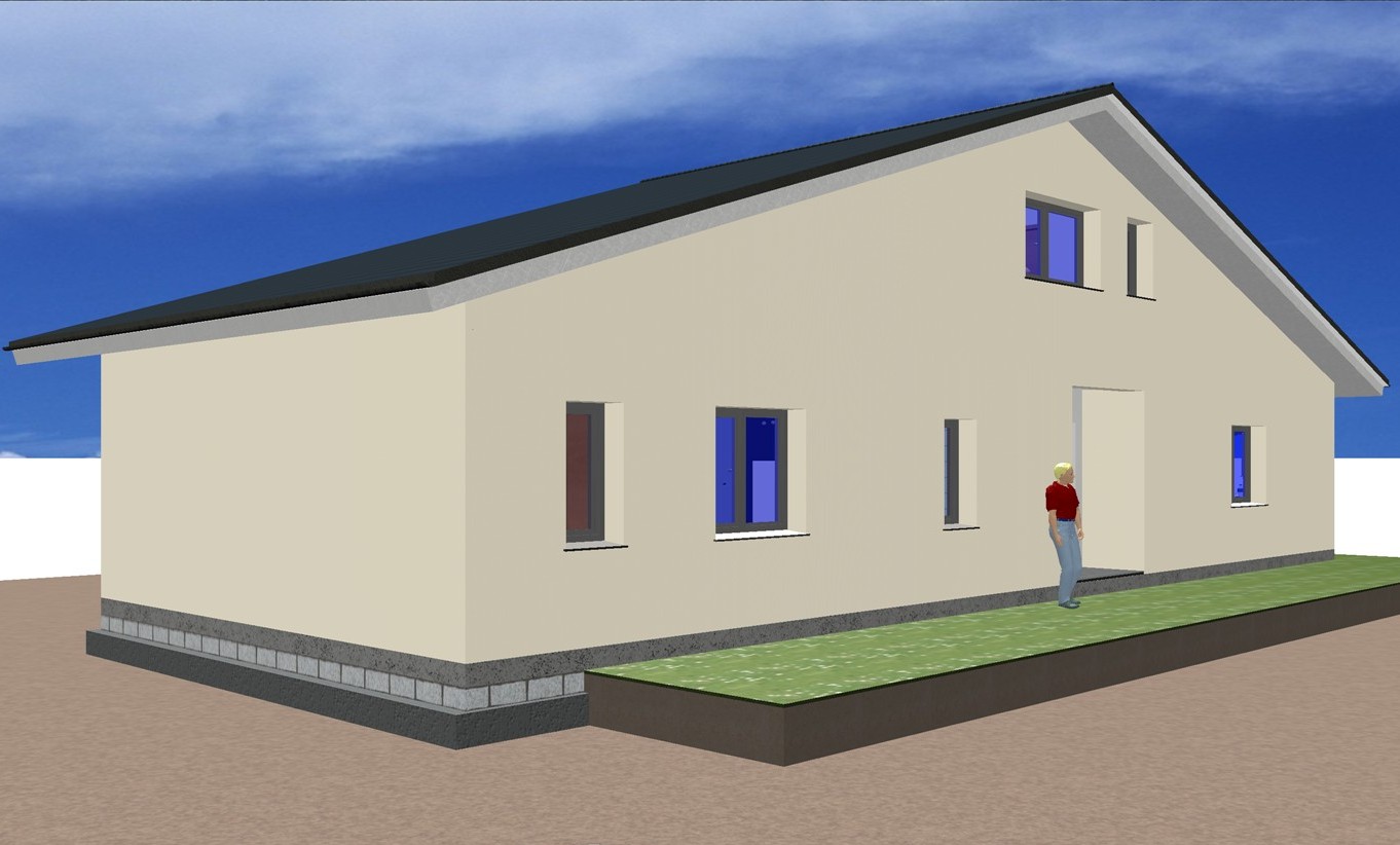 Es una construcción de alta calidad, sale económica por ser abuhardillada. Casa con cubierta de dos aguas y fachada acabada en hormigón.