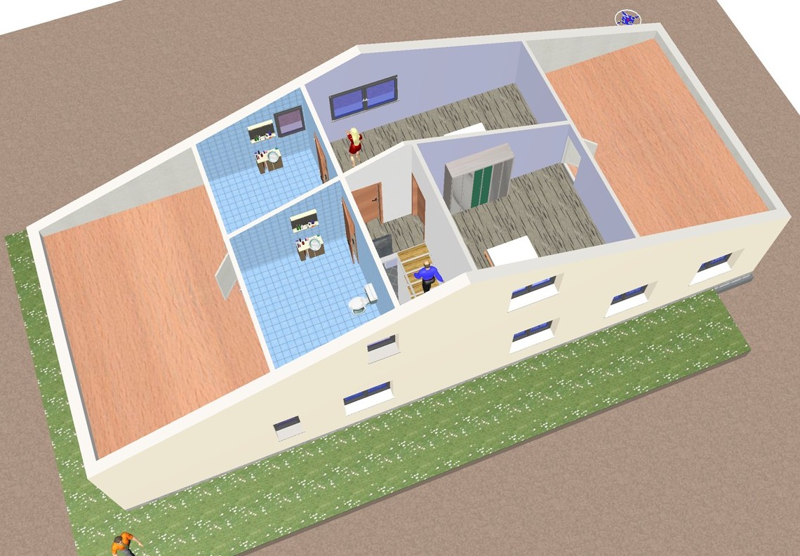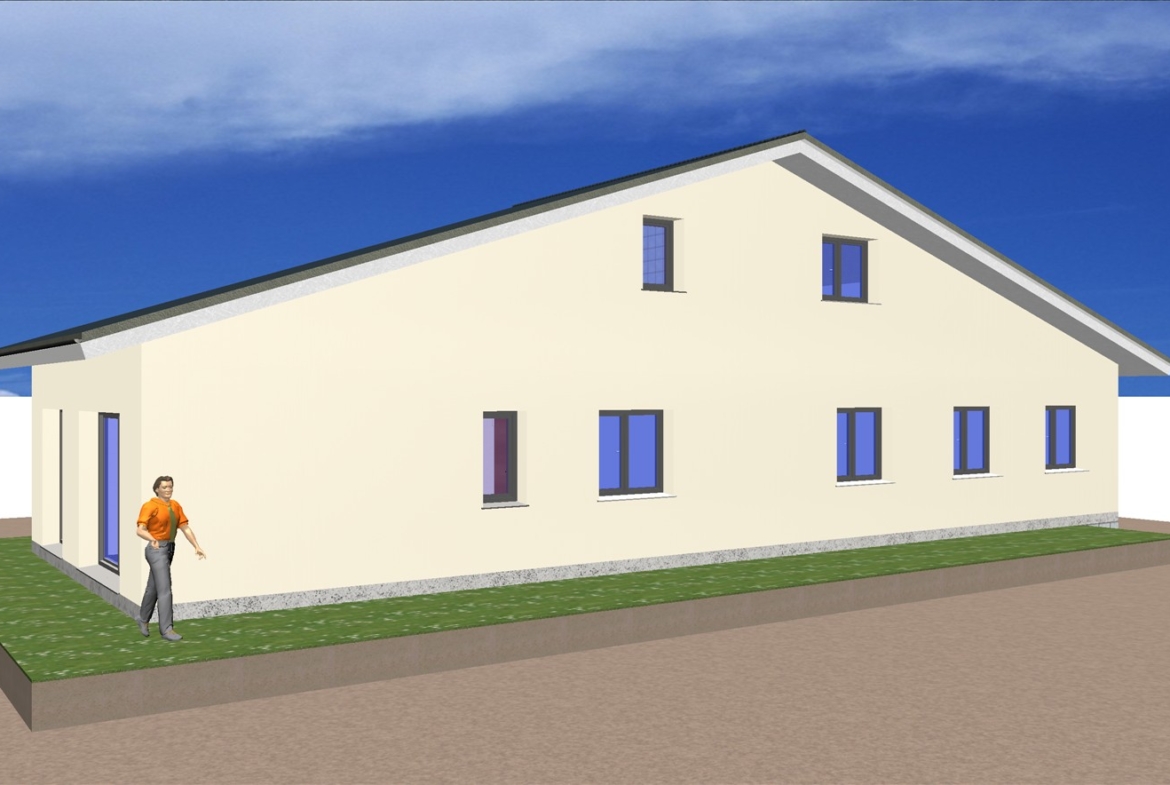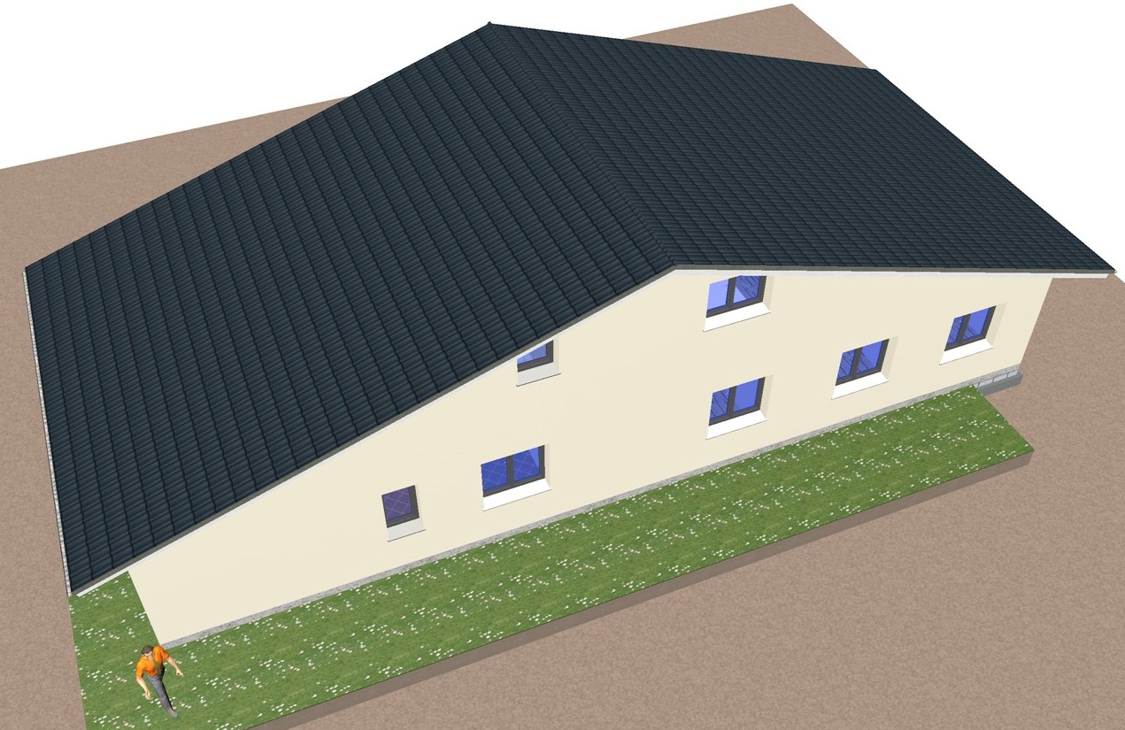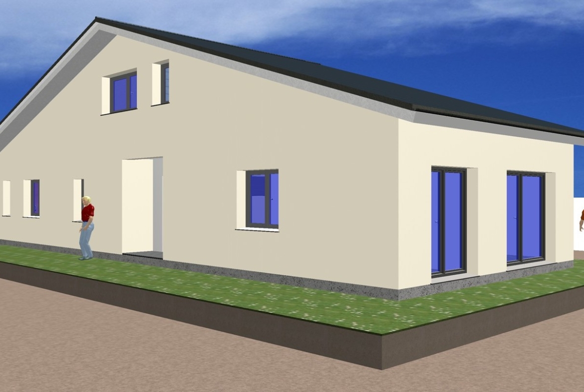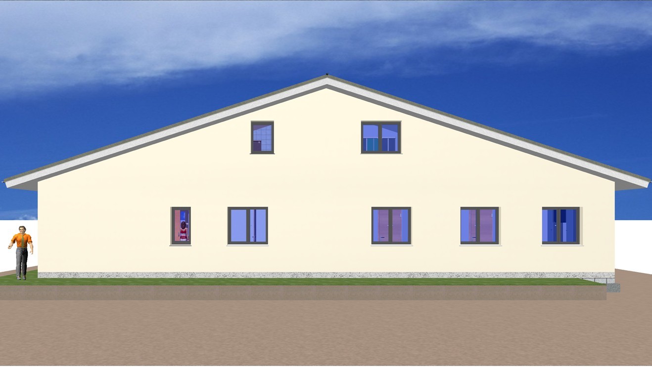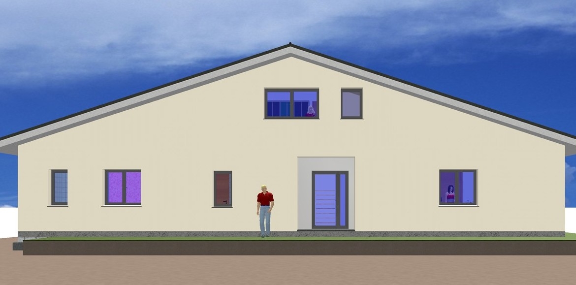 Es una construcción de alta calidad, sale económica por ser abuhardillada. Casa con cubierta de dos aguas y fachada acabada en hormigón.
