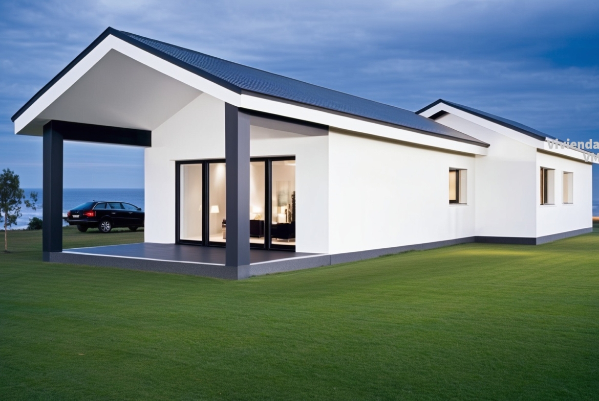 Se trata de una vivienda prefabricada diseñada con un estilo moderno actual contemporáneo para satisfacer todas las necesidades de los clientes.