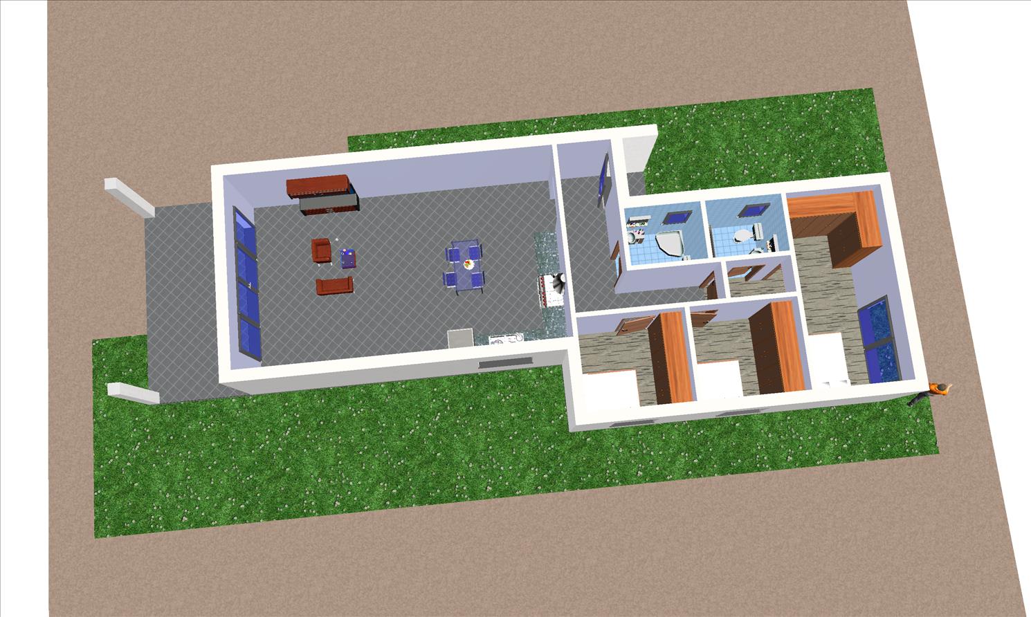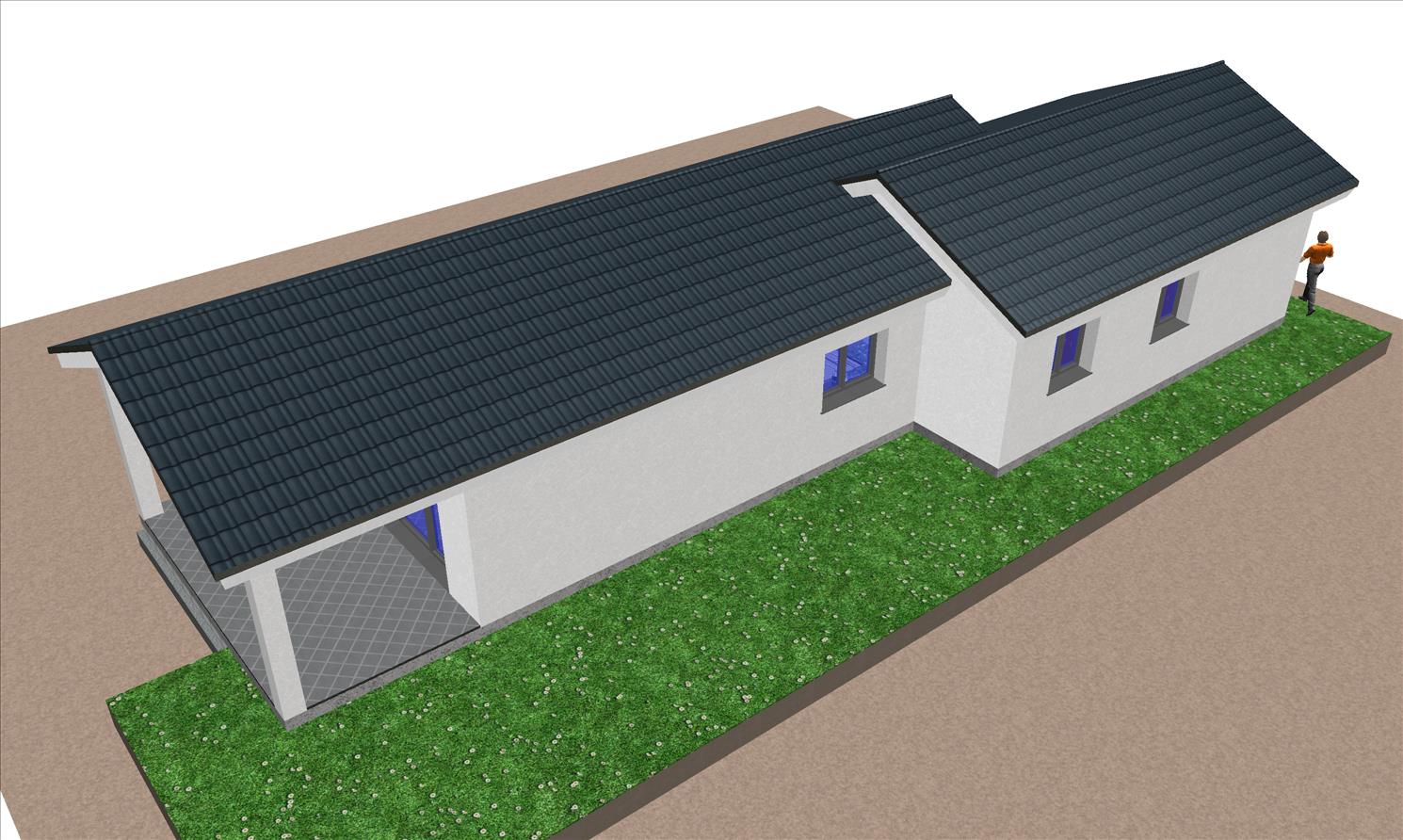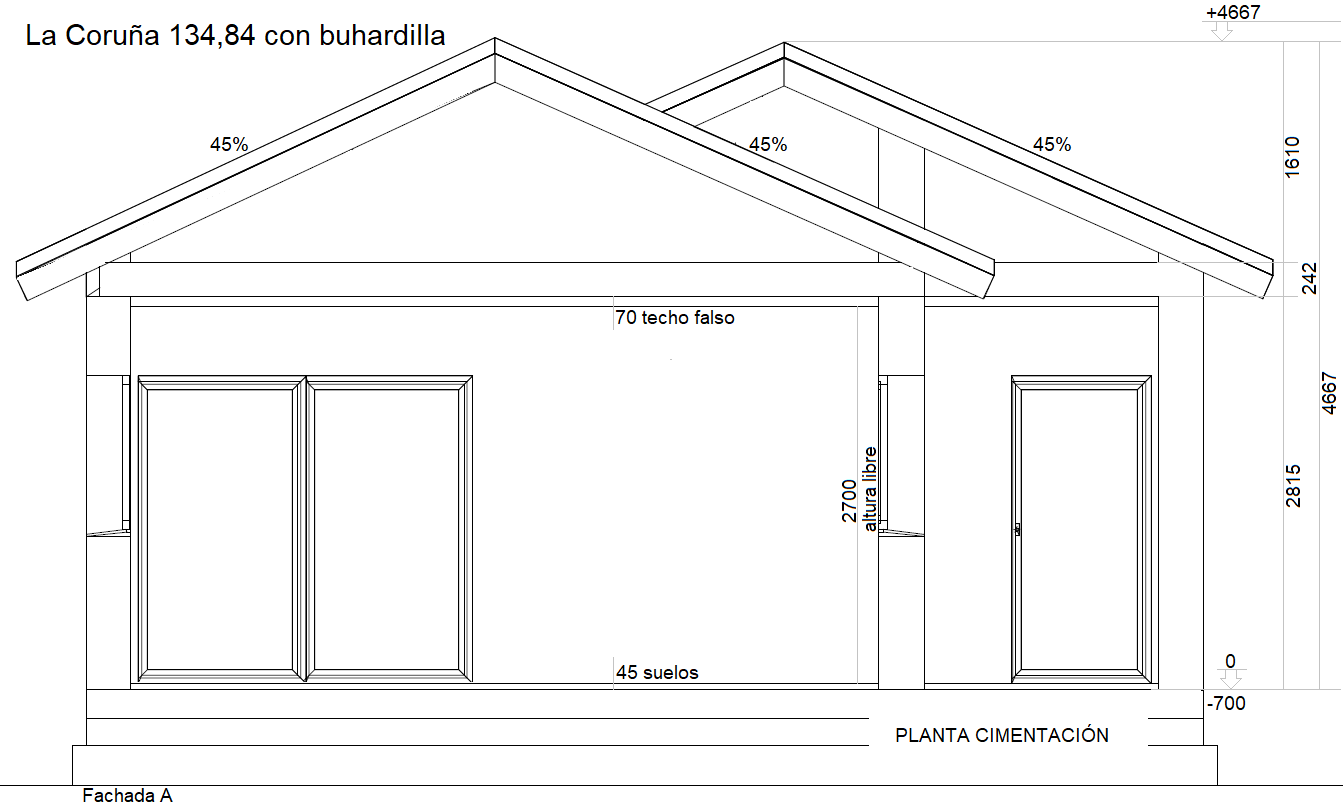 Esta es una vivienda prefabricada de alta calidad con un gran desarrollo en planta baja, donde las vistas frontales, los grandes ventanales y la funcionalidad en la funcionalidad en la distribución son una prioridad.