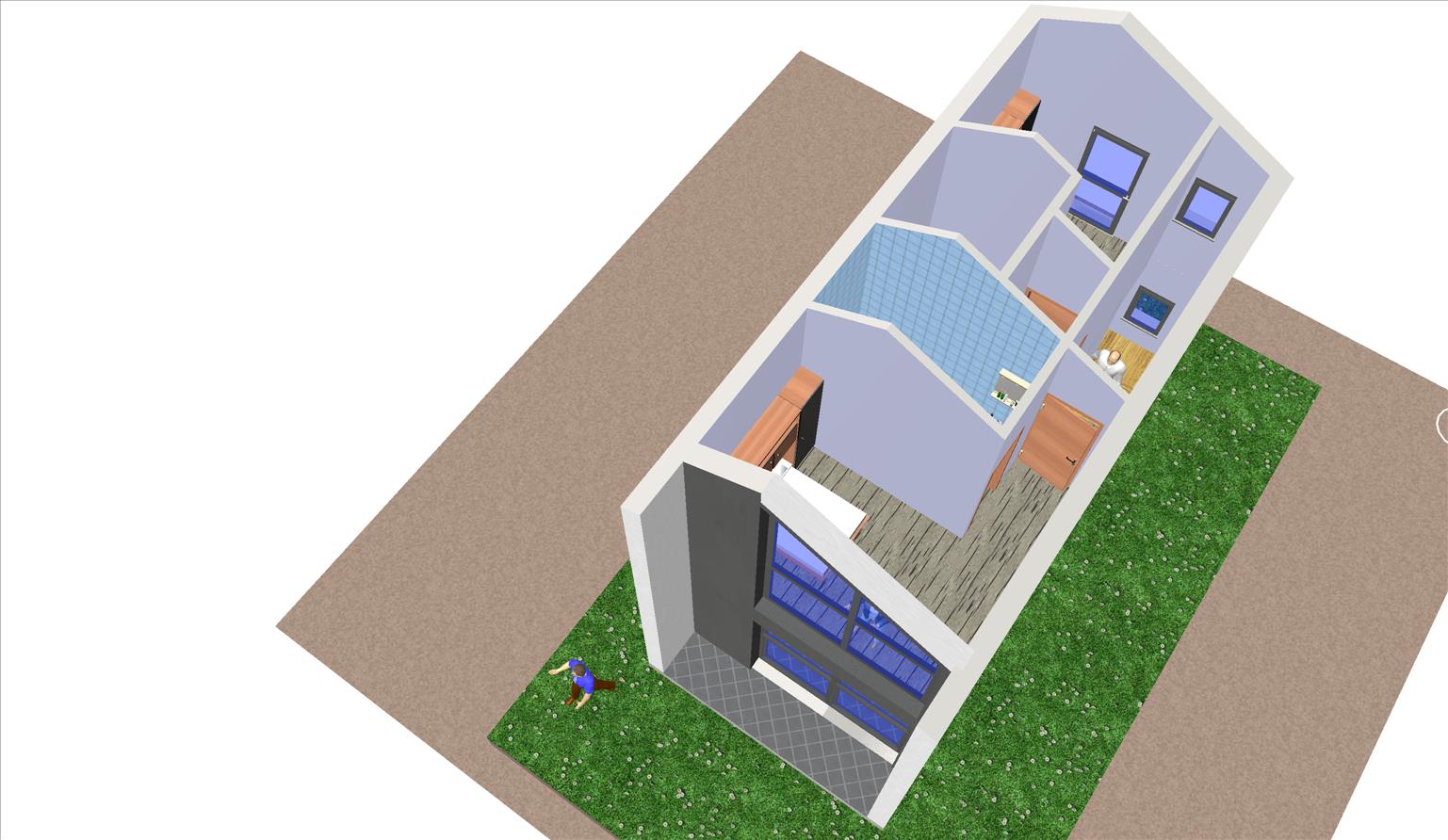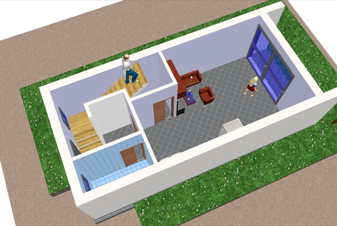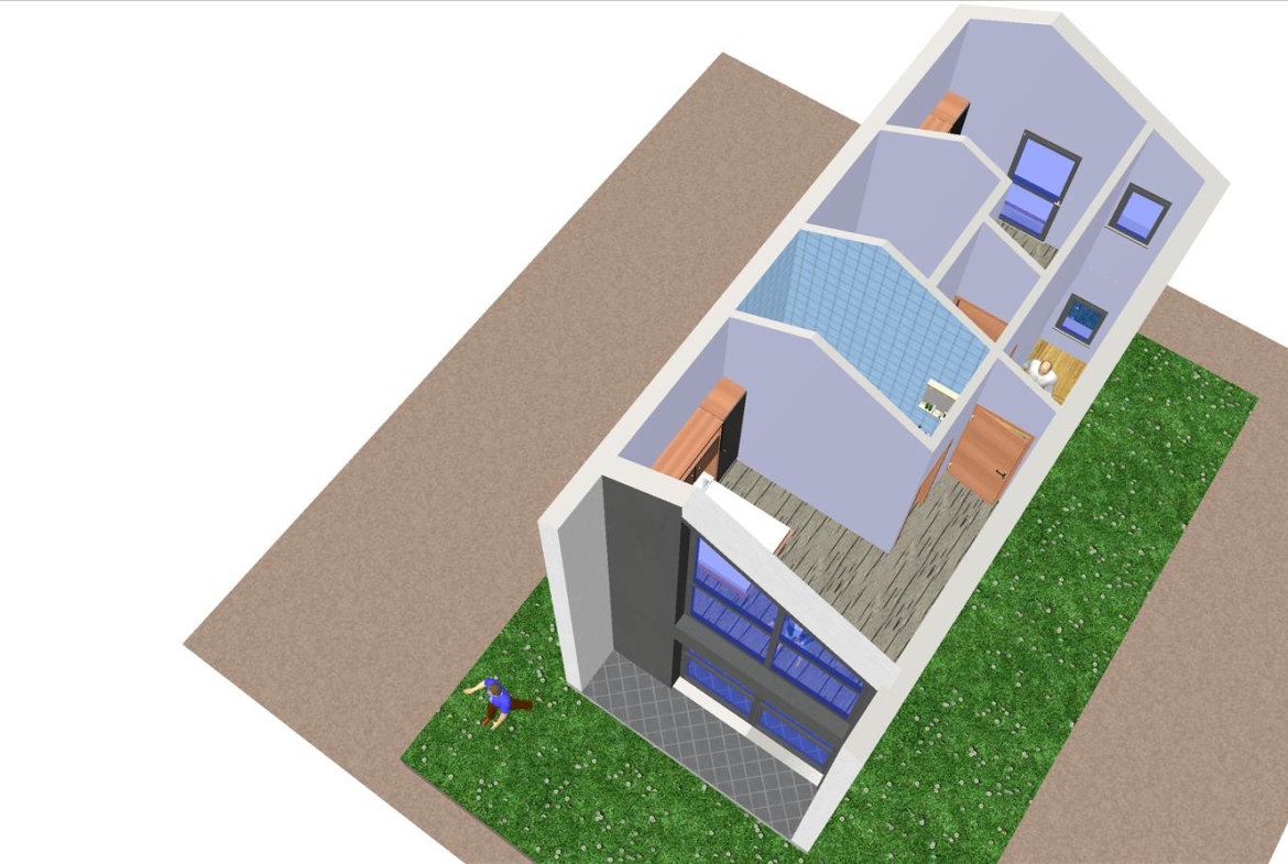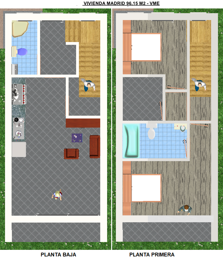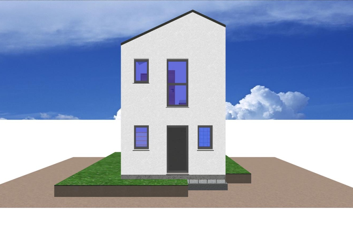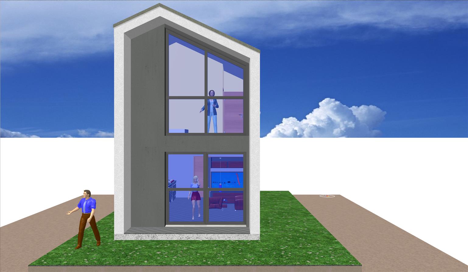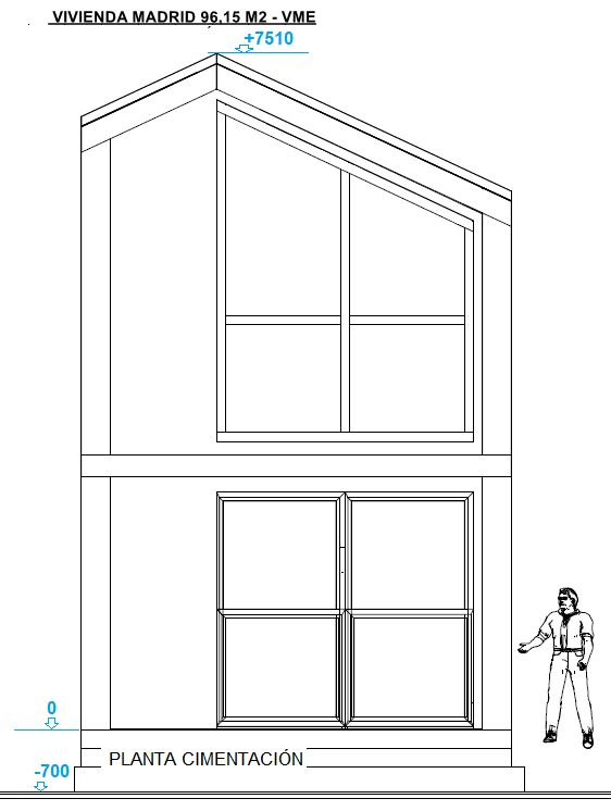 Modelo casa Madrid moderna entre medianeras de 96,15m2 construidos, con cubierta inclinada, puede ser adaptada a su gusto.