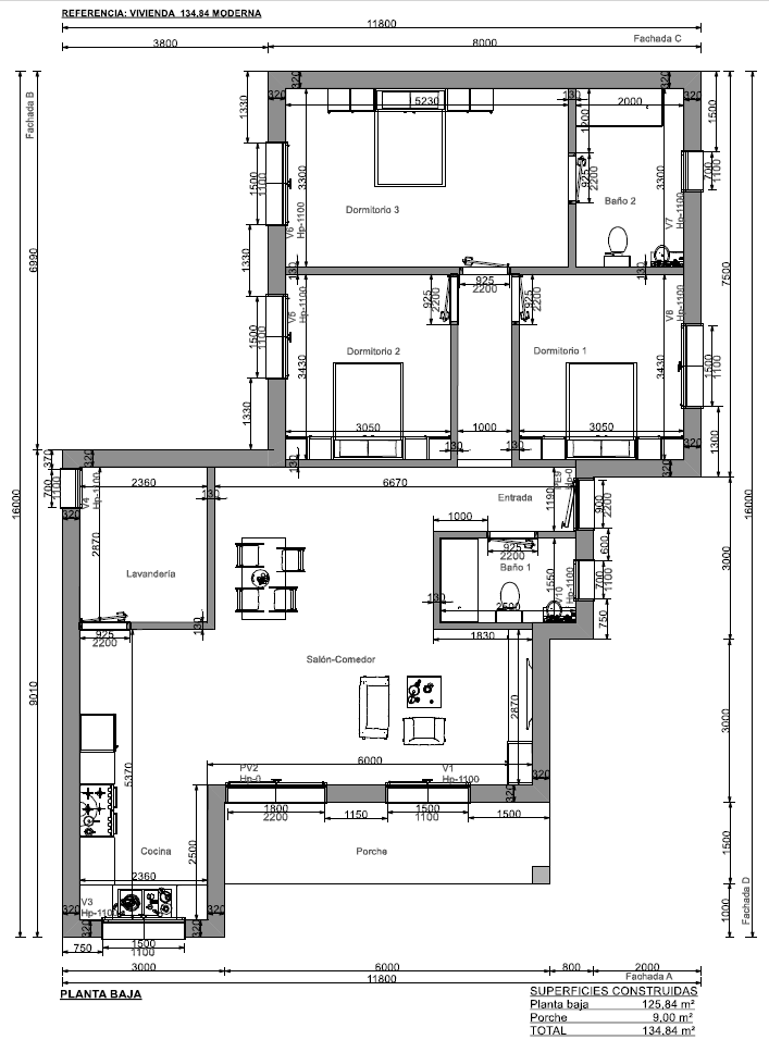 Esta casa prefabricada moderna Murcia cuentan con 3 dormitorios, 2 baños, salón comedor, cocina, lavadero, aunque se ofrecen opciones de personalización.