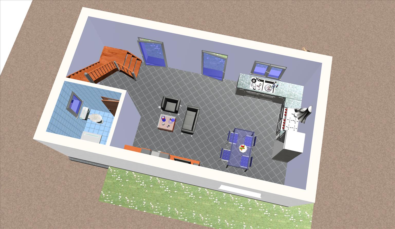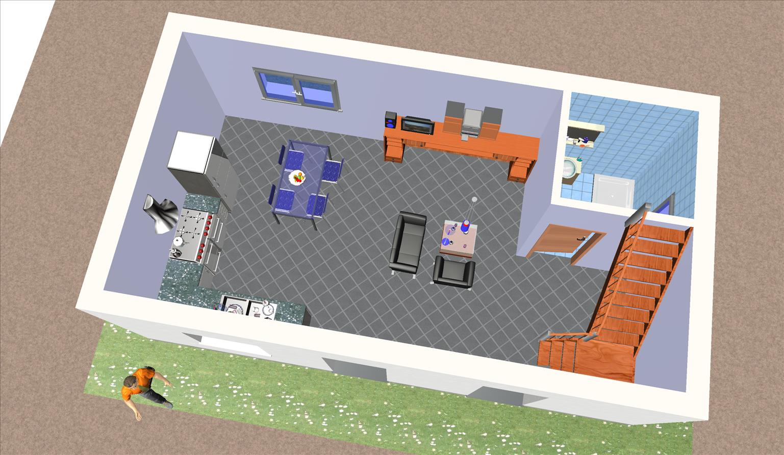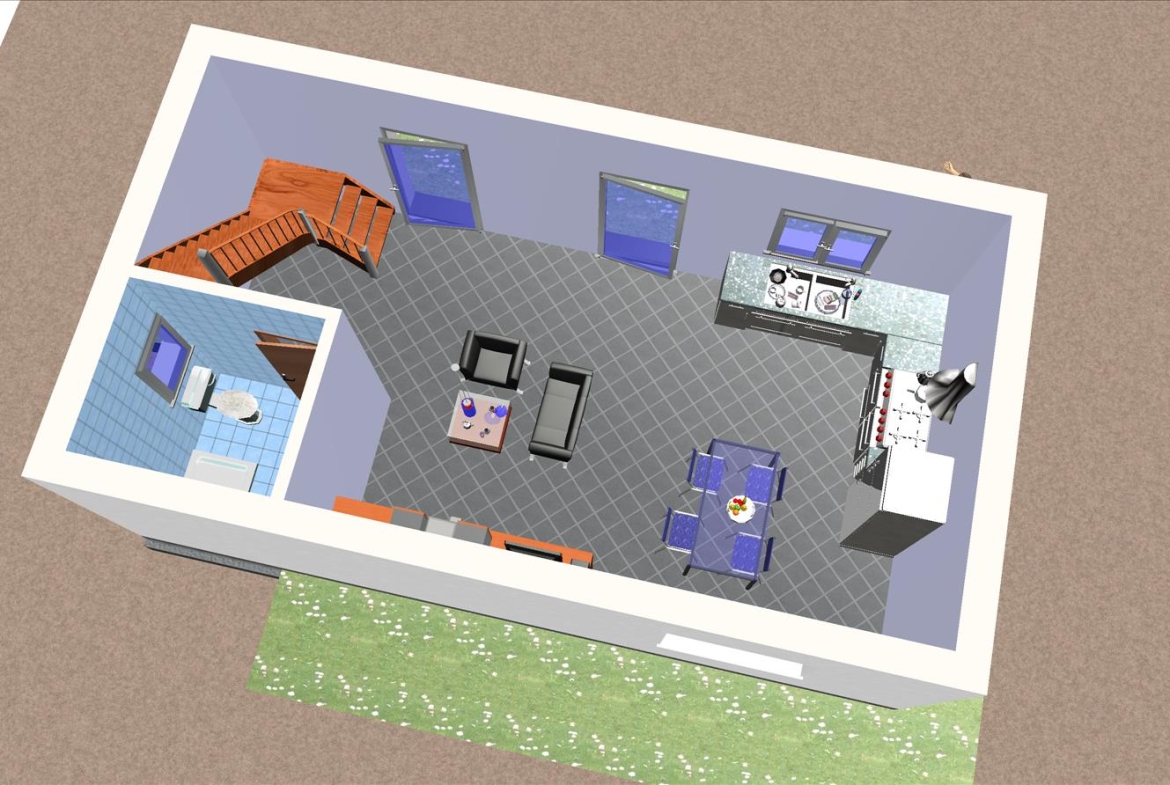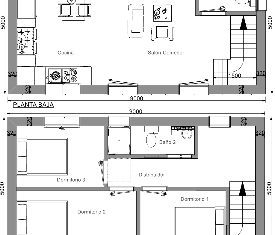 La baja de la vivienda prefabricada está destinada las zonas comunes vivideras en las que se sitúan el salón comedor, la cocina, y un baño.