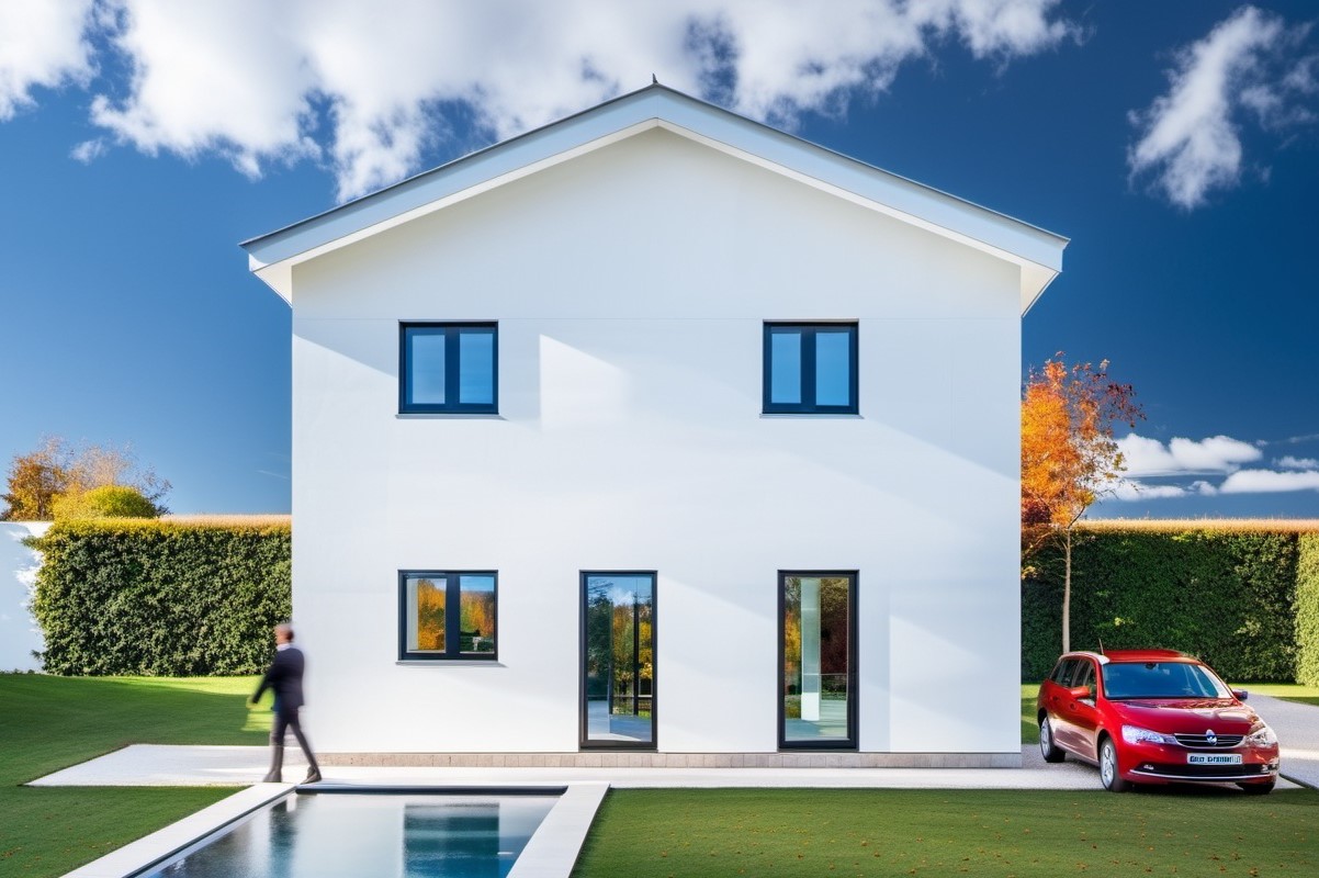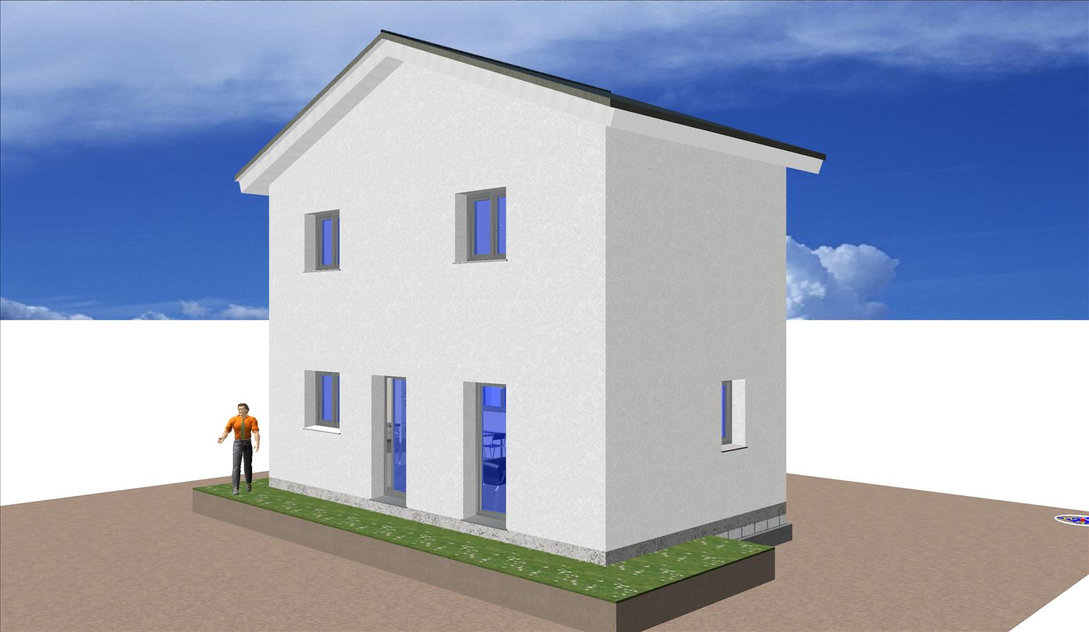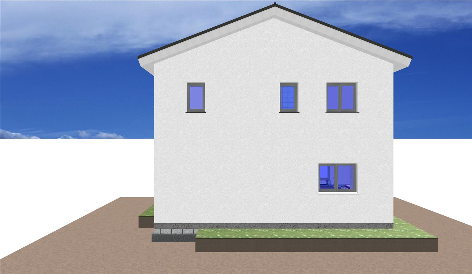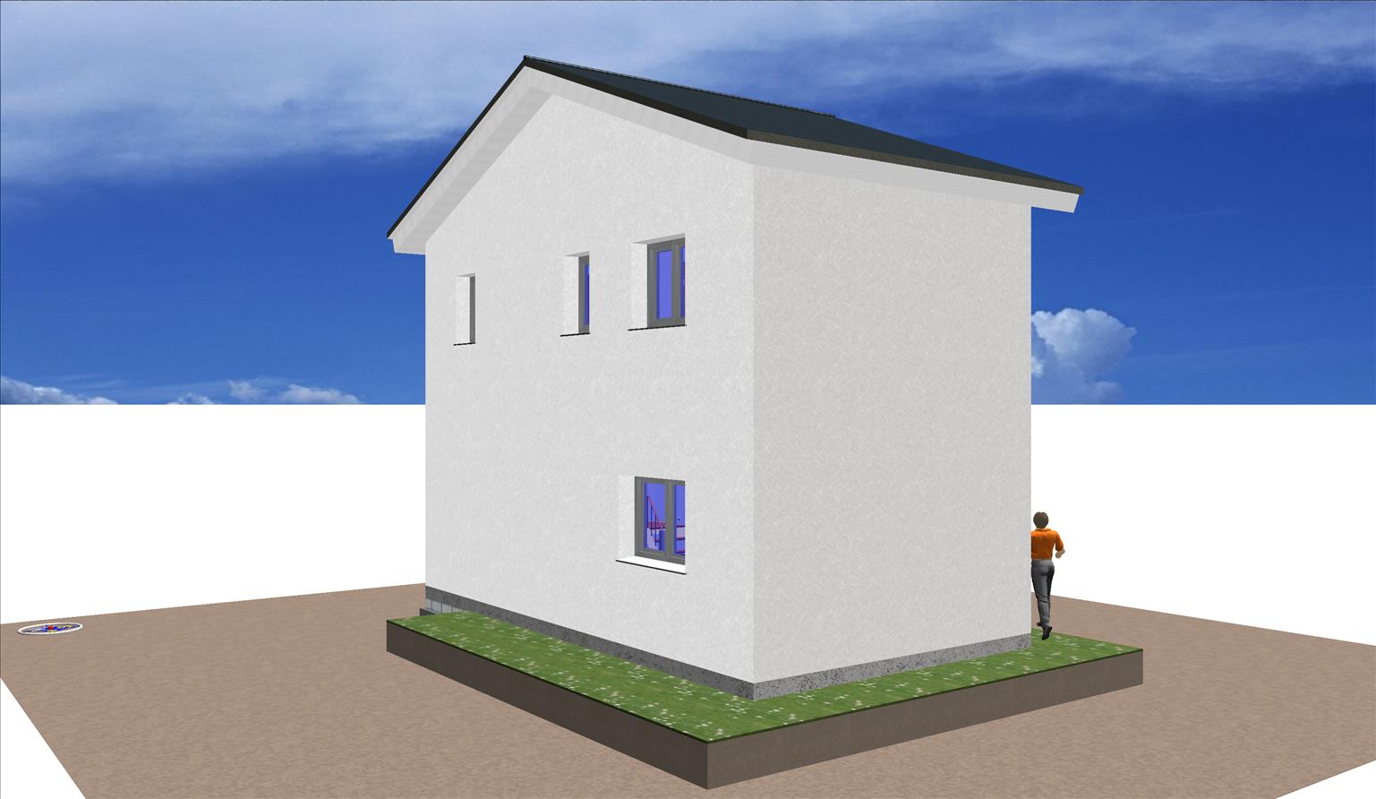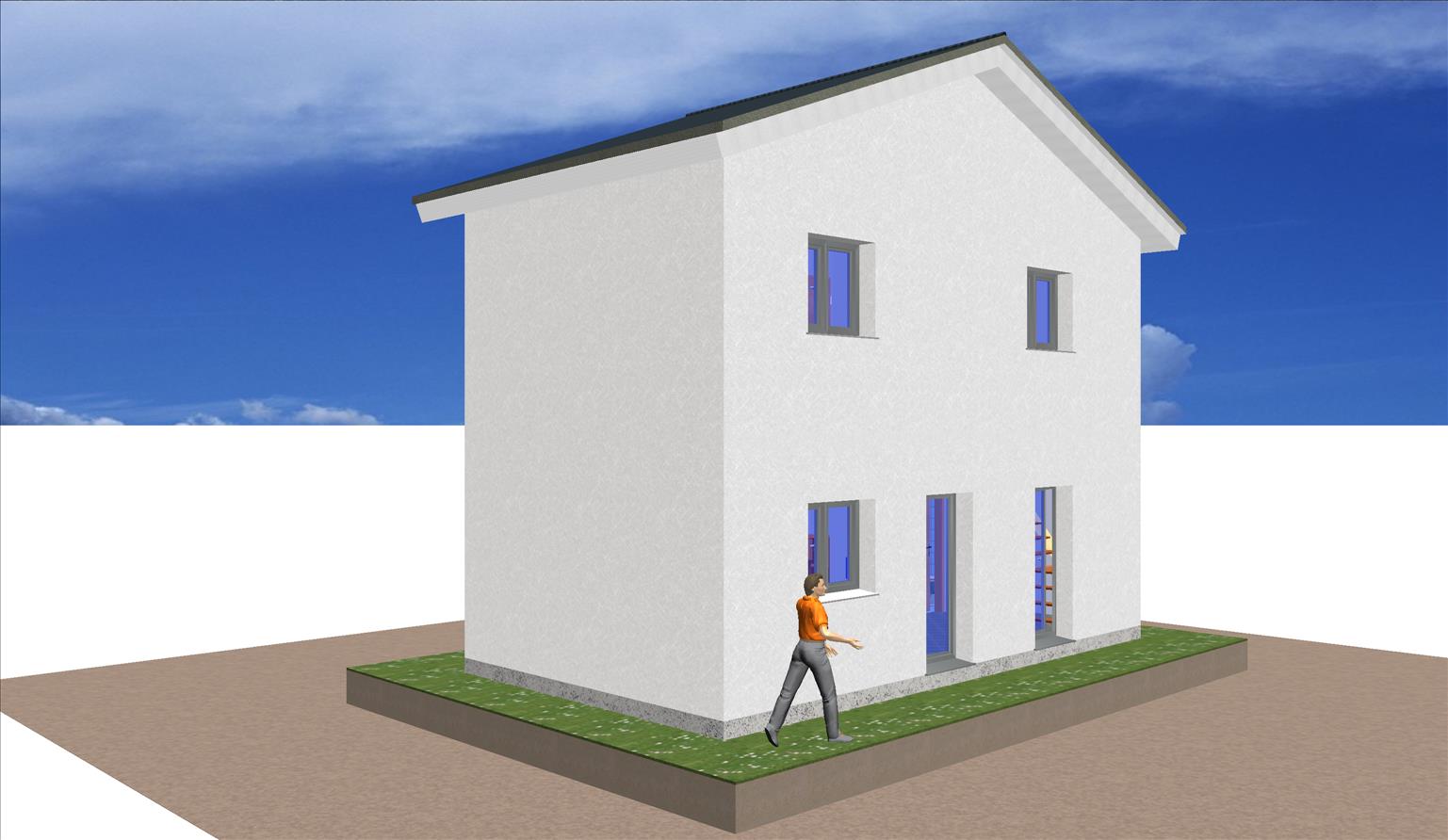 La fachada de hormigón está revestida de un mortero monocapa de color blanco.