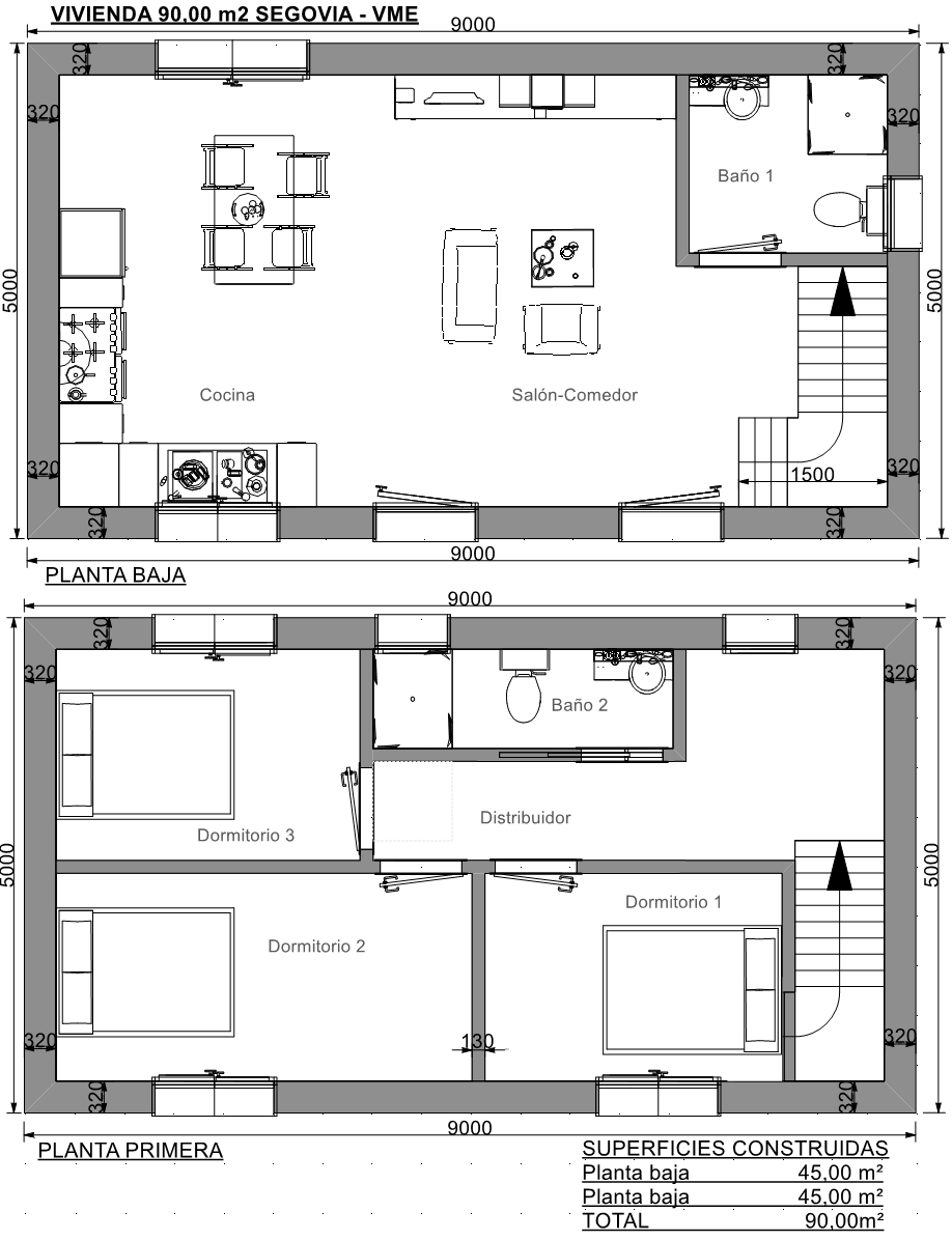 Casa prefabricada Segovia cuenta con superficies de 90m2 construidos.