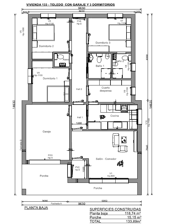 Casas con 3 dormitorios y garajes con cubierta inclinada de alta calidad