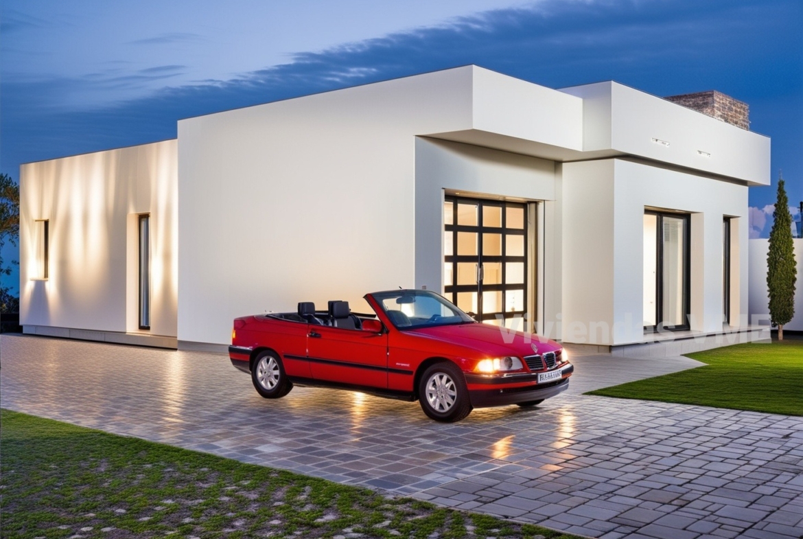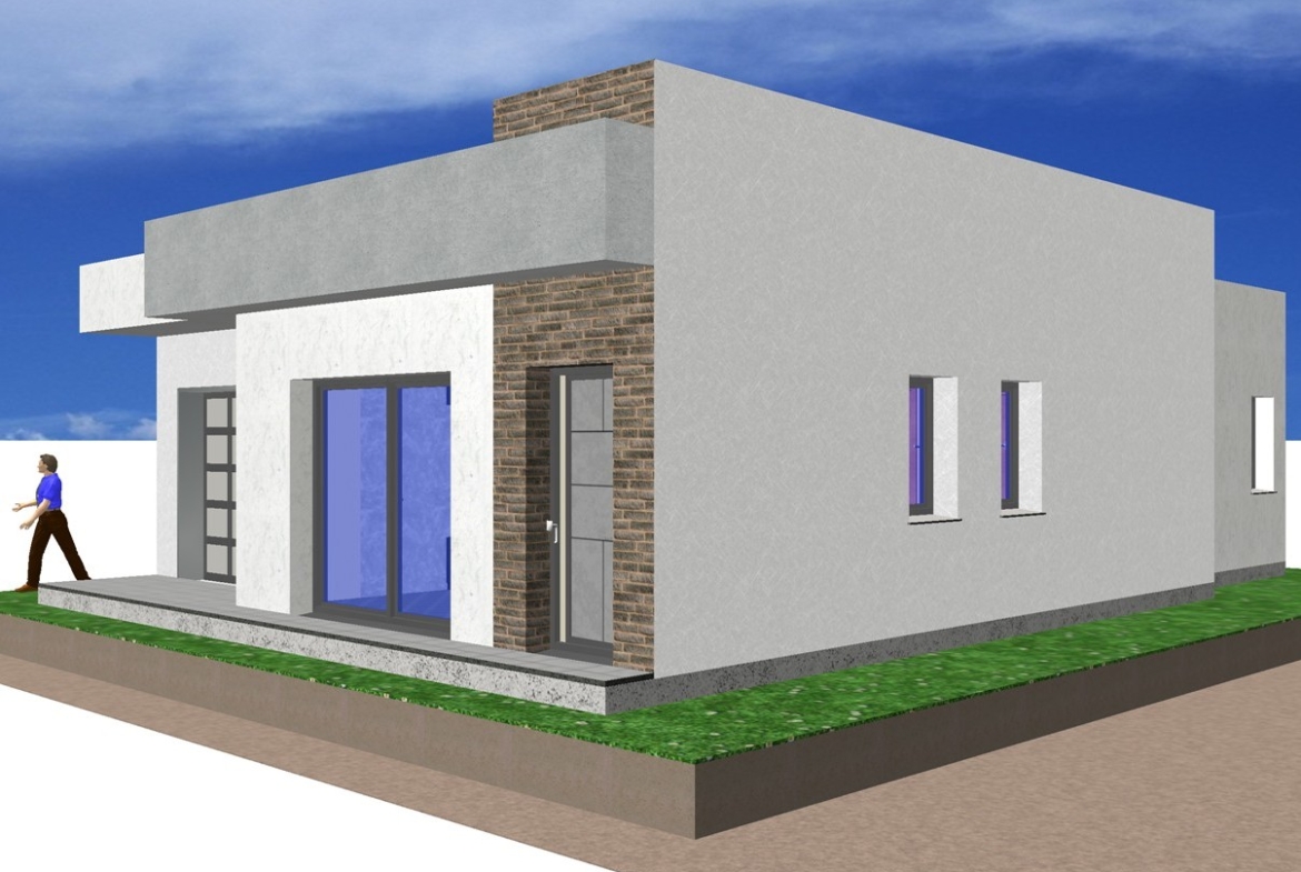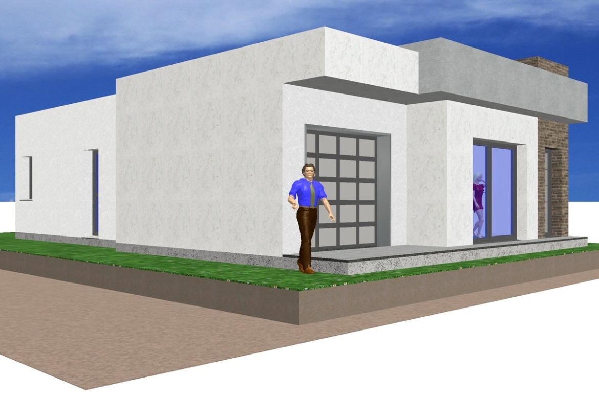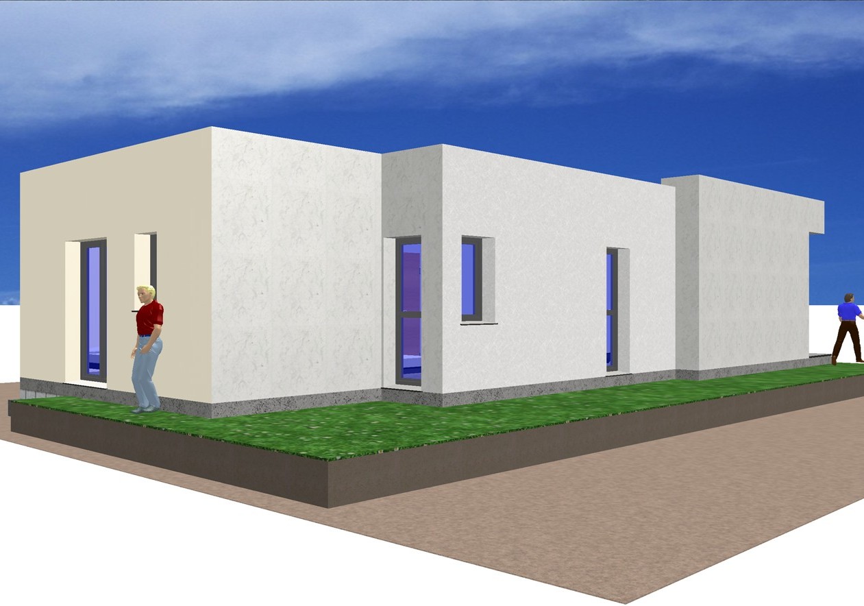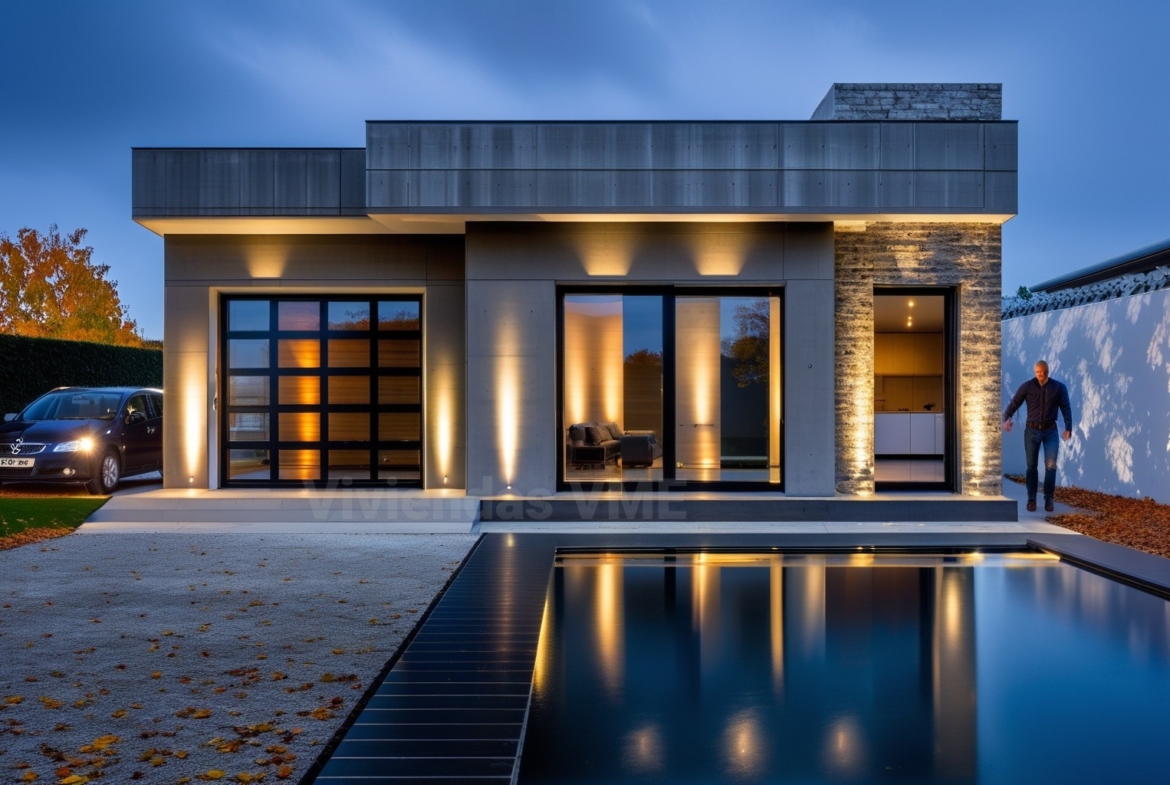 Las casas con 4 habitaciones y garajes VME modernas con fachadas de hormigón, son casas prefabricadas fácilmente ampliables. Superficie construida 147m2