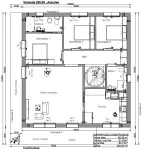 PLANO 1 – Asturias 200m2 – con 5 dormitorios y porche