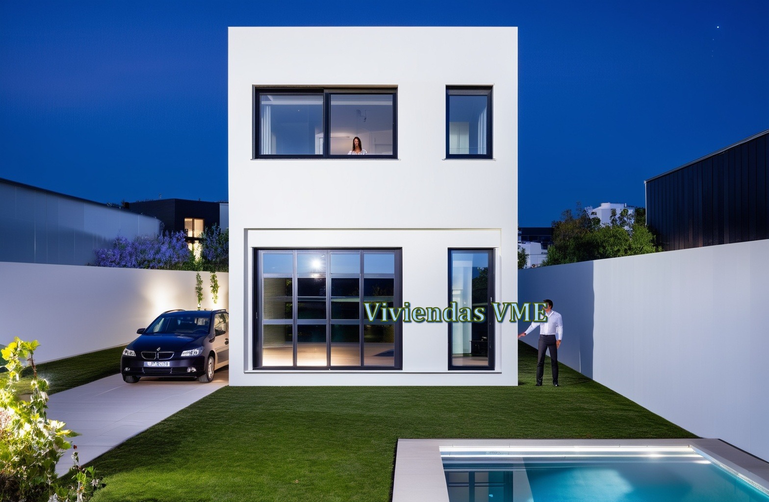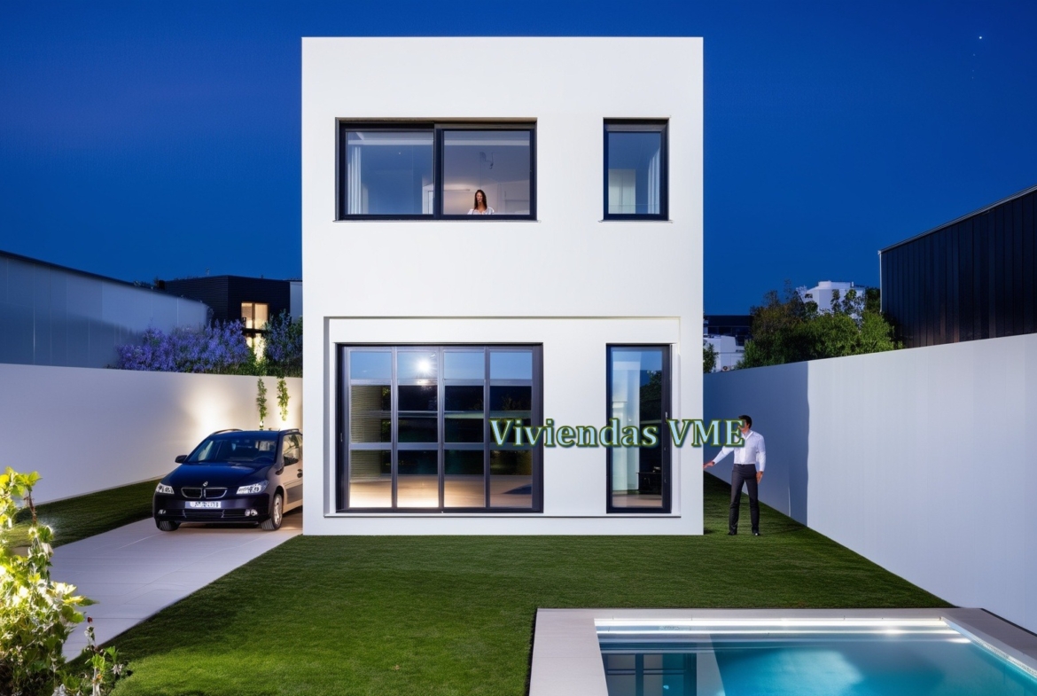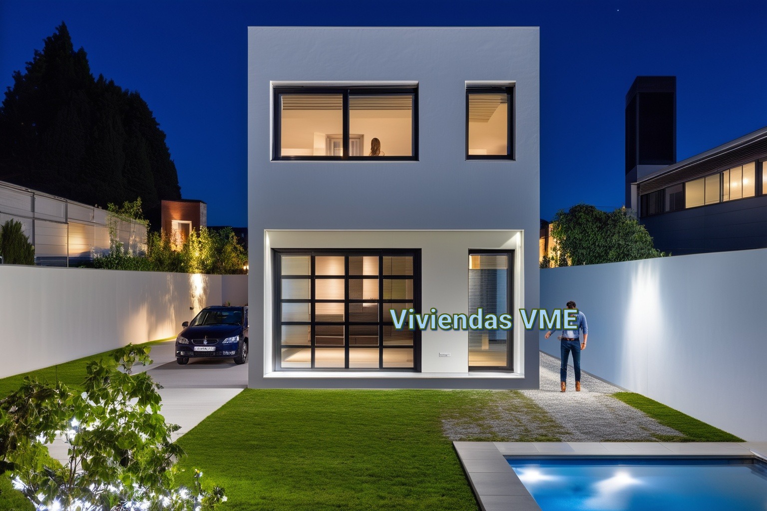 Construcción de Viviendas VME en Facebook, ver más fotos de casas entre medianeras prefabricadas, pasivas y modernas de hormigón y mortero de cemento de alta calidad en Madrid, Valencia y toda España.