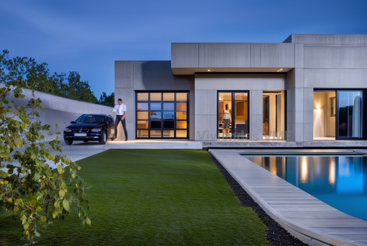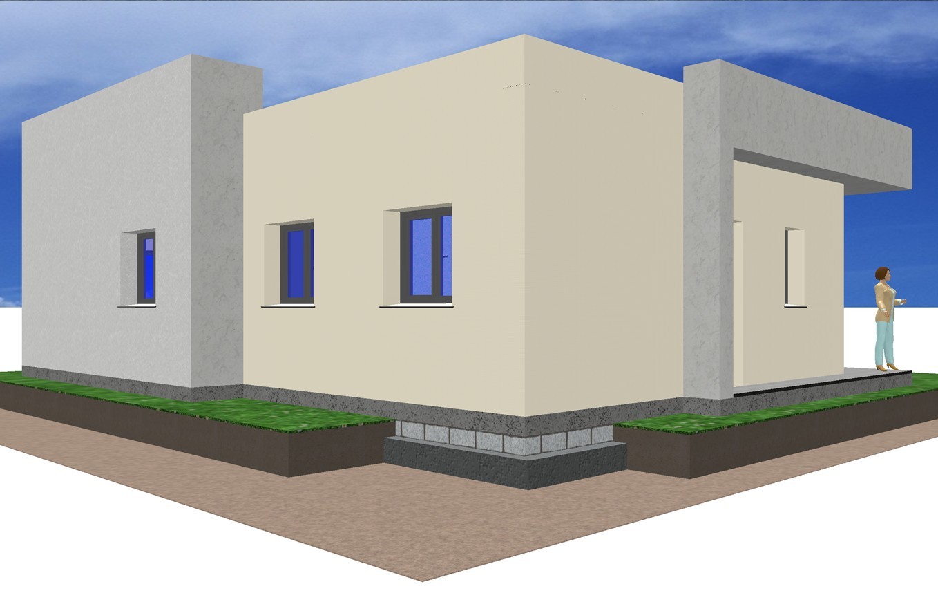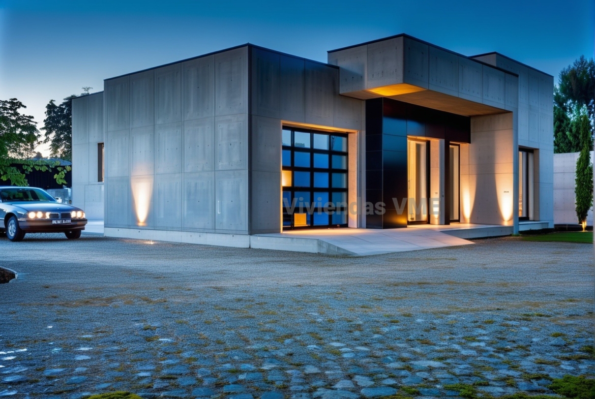 Una casa moderna acabada en hormigón y mortero de cemento coloreado, con un elegante diseño de tipo minimalista, conforman un conjunto muy compacto.