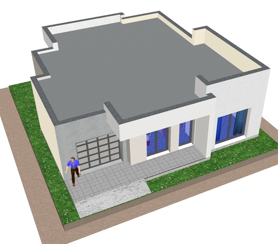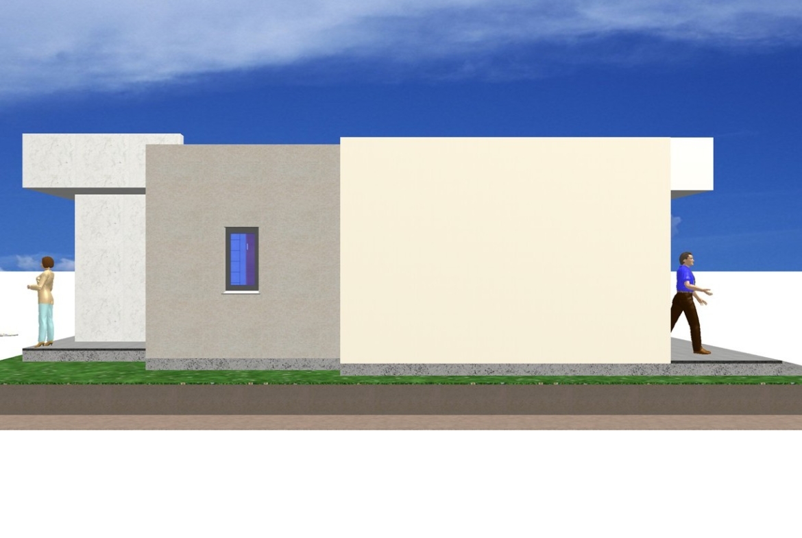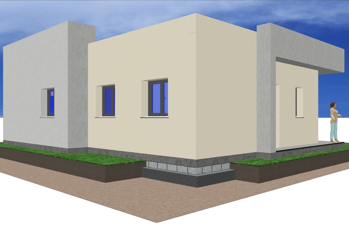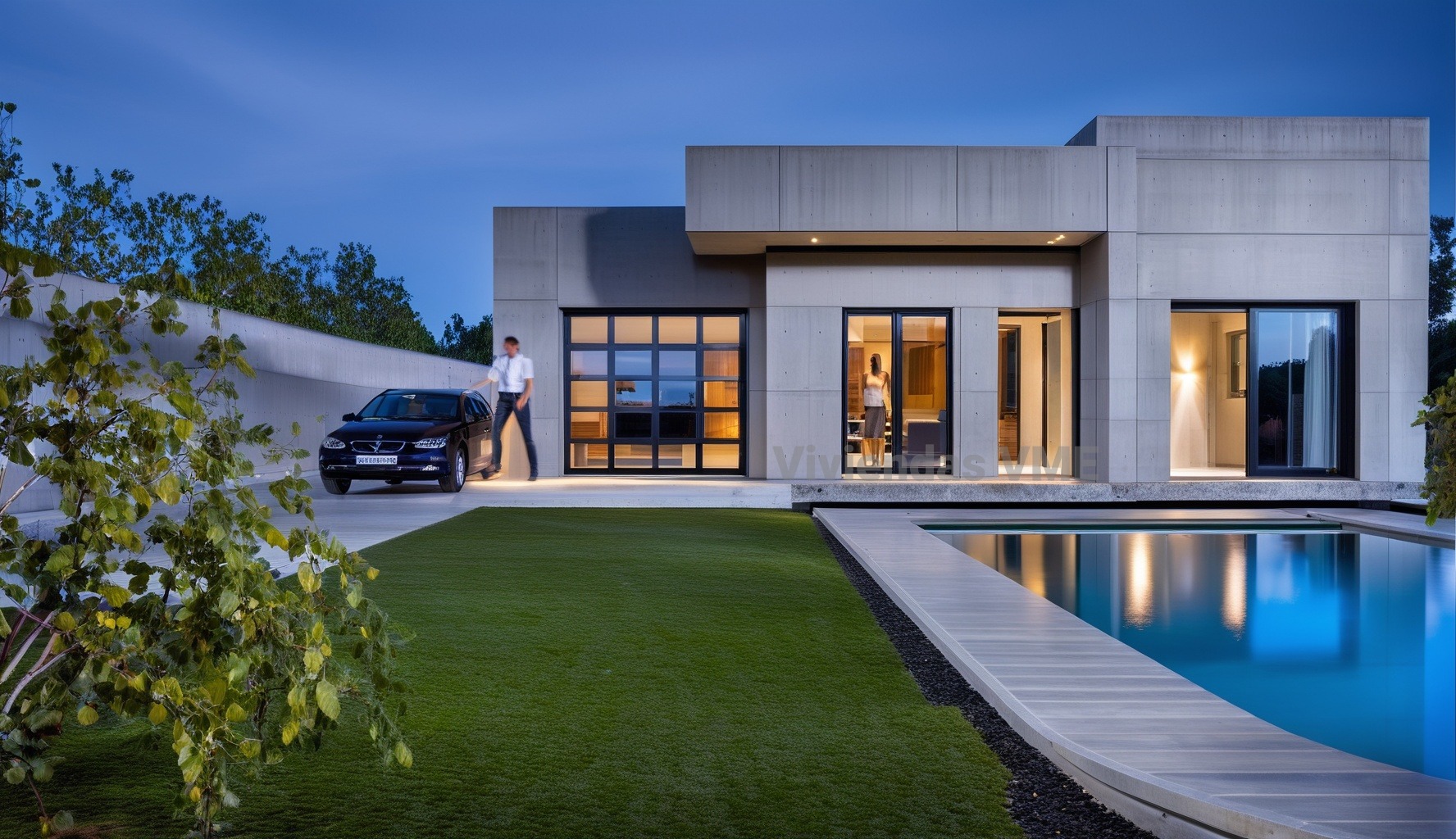 Una casa moderna acabada en hormigón y mortero de cemento coloreado, con un elegante diseño de tipo minimalista, conforman un conjunto muy compacto.