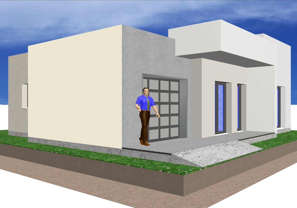 Casas prefabricadas modernas VME – Modelo Madrid 134 m2 construidos, con 3 habitaciones y garajes.