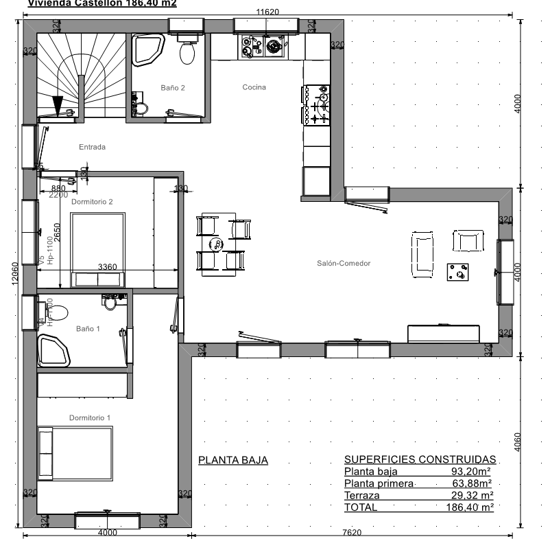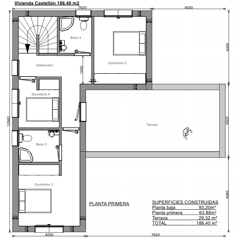 Superficie total construida 186,40 m2.