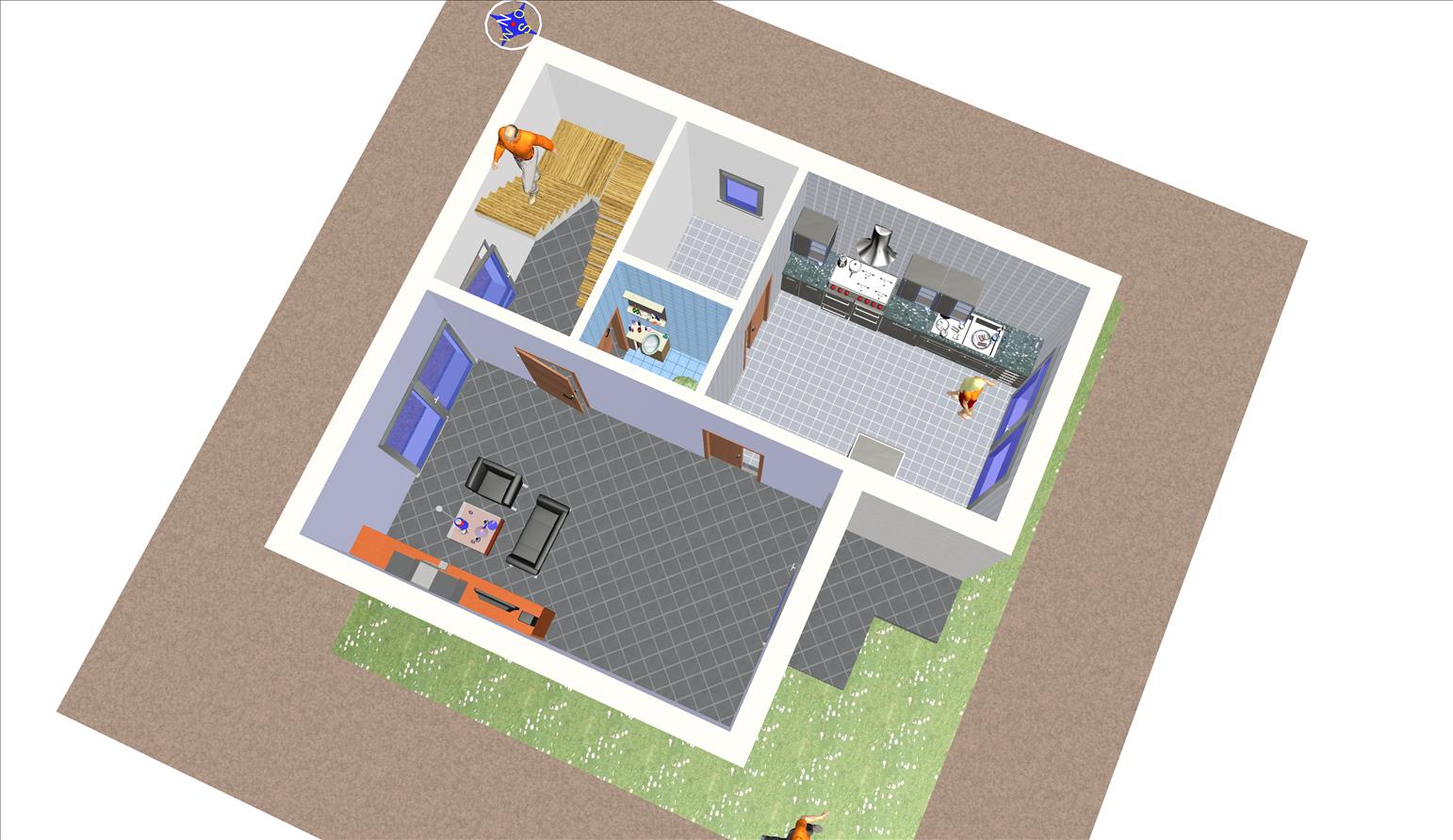 En la planta baja la casa prefabricada moderna consta de tres dormitorios, un baño, un aseo, salón, cocina, cuarto lavadero y un porche.