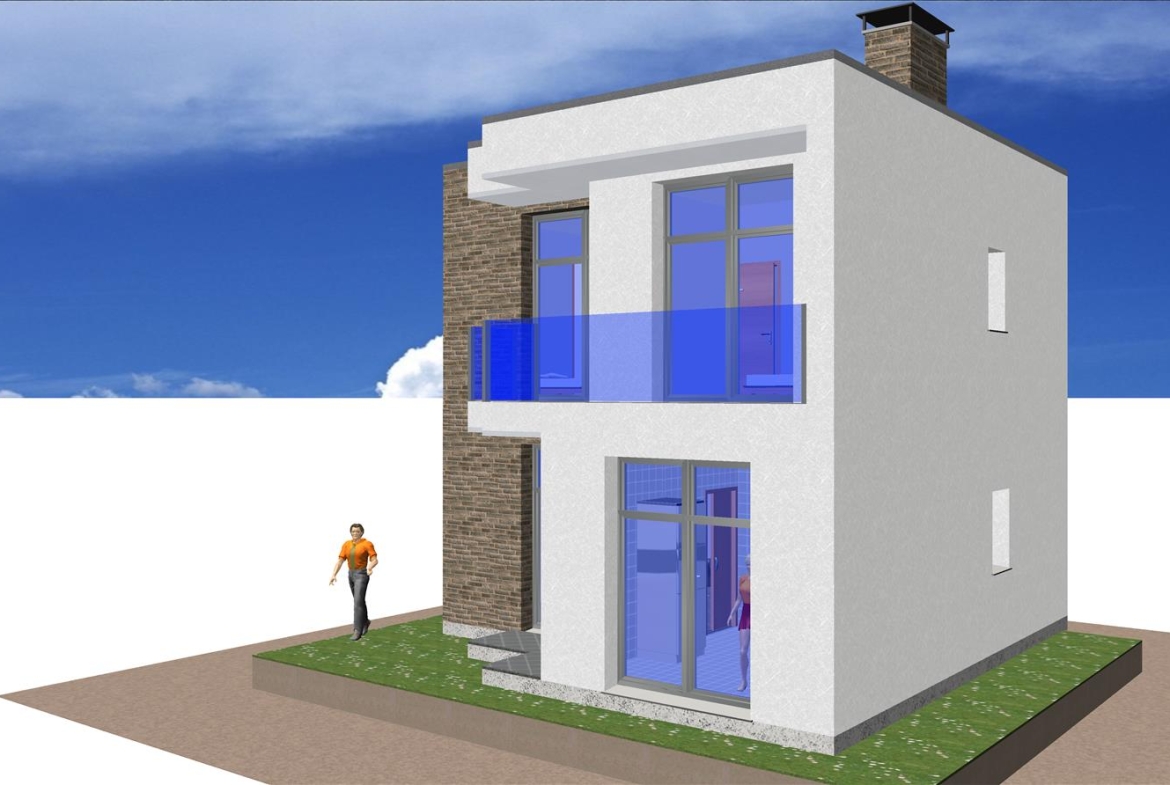 Una acogedora casa prefabricada moderna con fachada de hormigón y de vidrio. Es una casa prefabricada moderna con unas plantas asimétricas que aprovecha al máximo su espacio sin complicar su distribución interior.