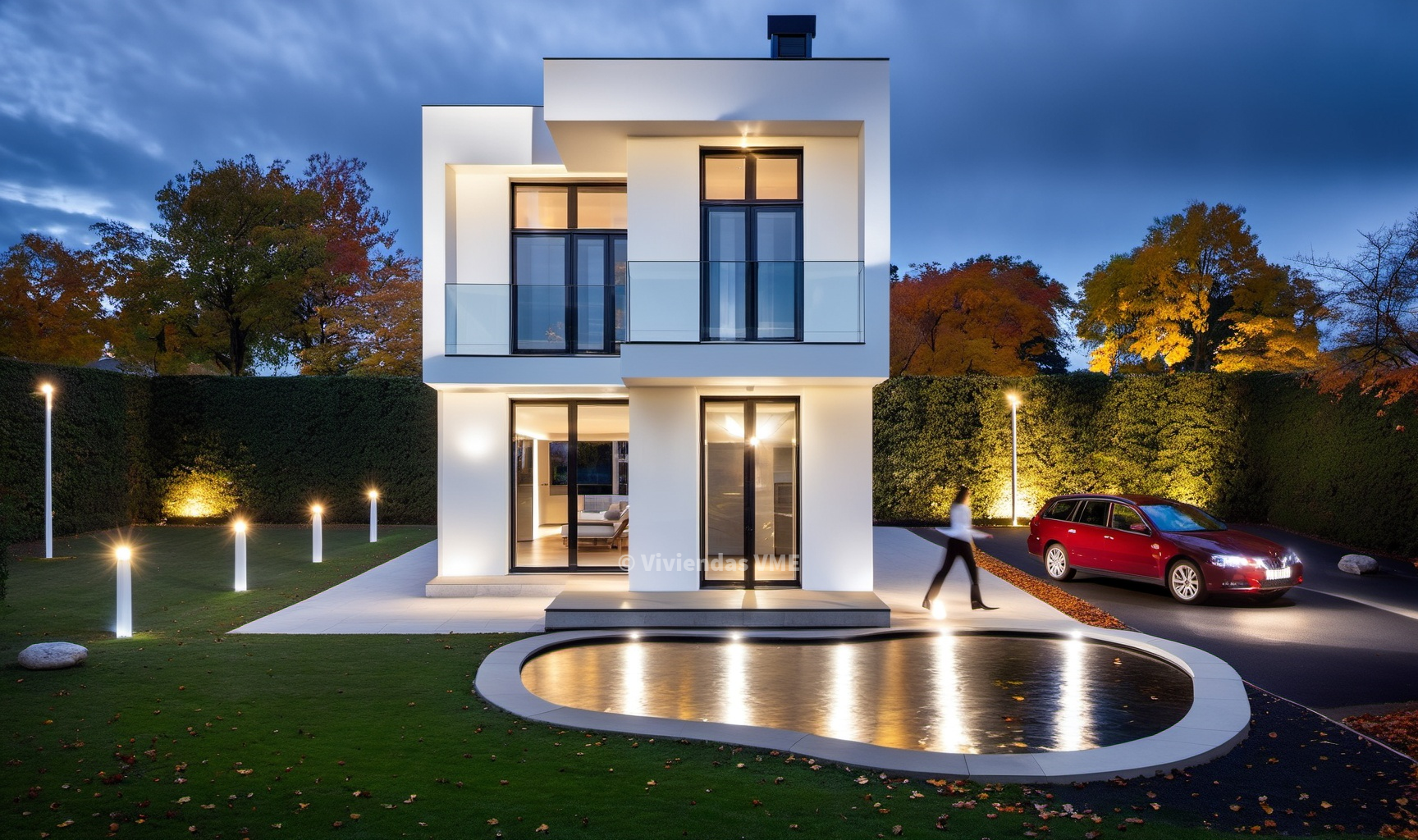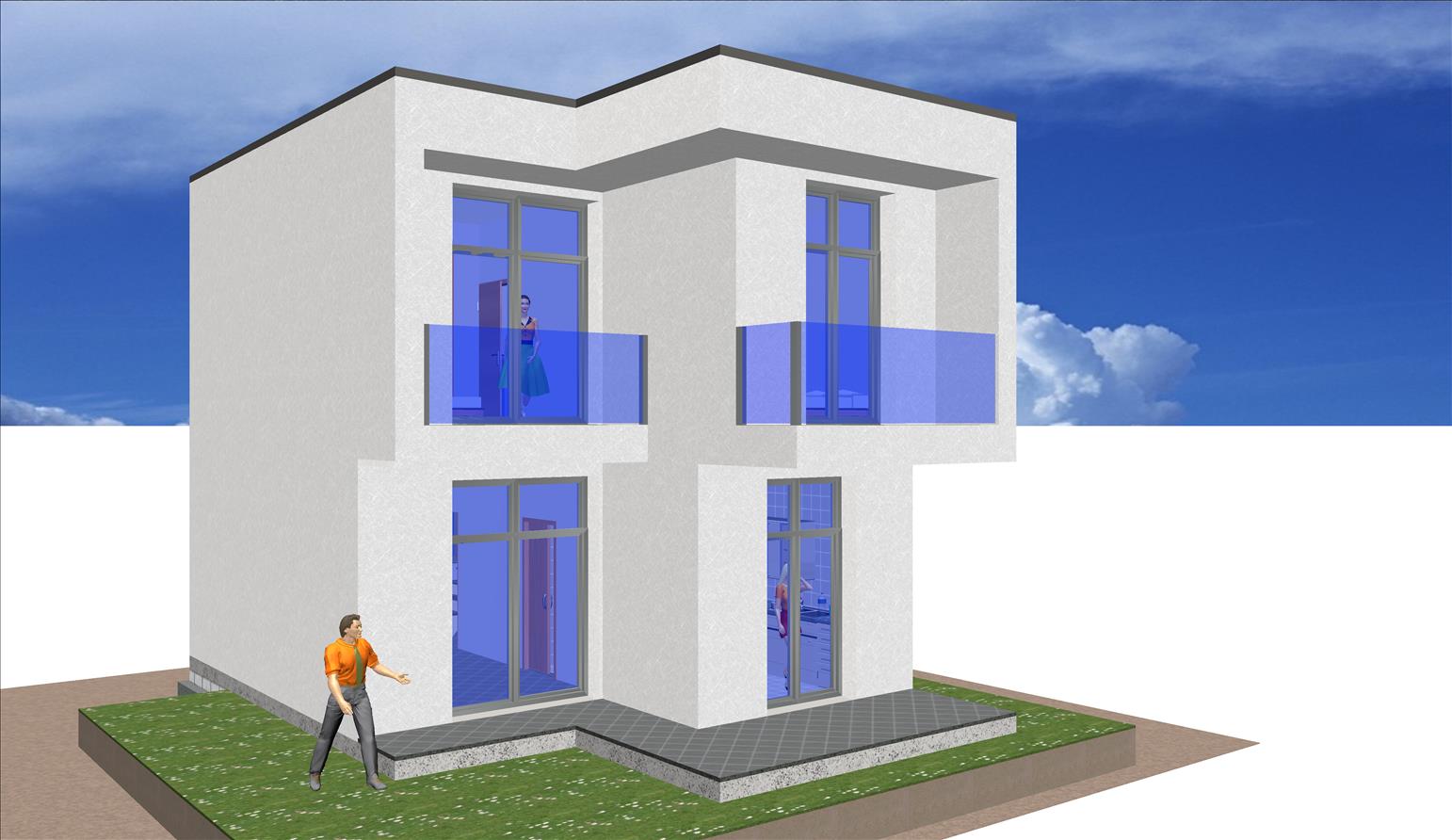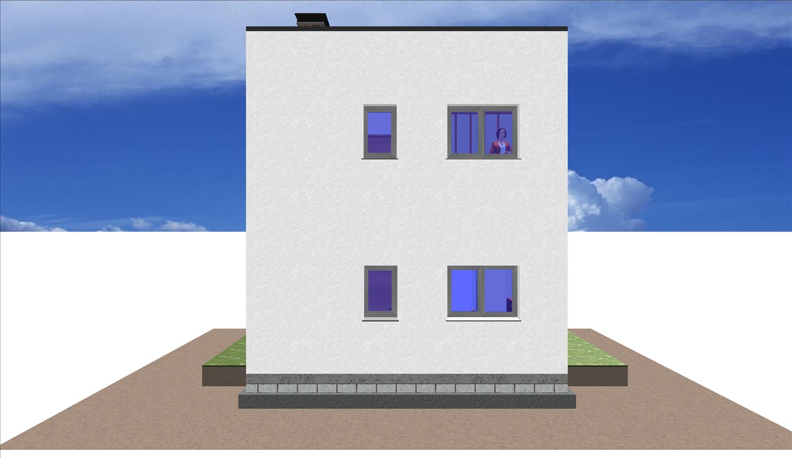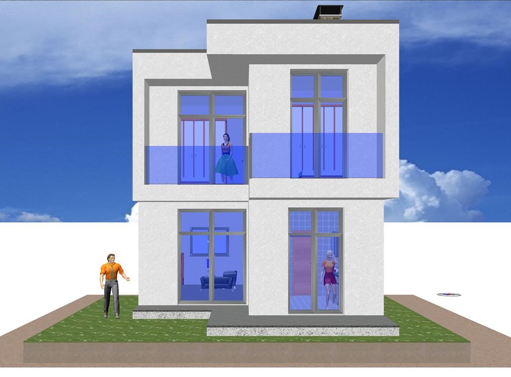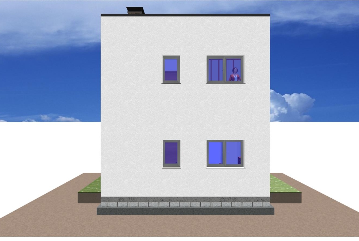 Es una casa prefabricada con 3 dormitorios, fachada de hormigón de estilo moderno, cuenta con dos plantas diseñadas mediante volúmenes cúbicos y minimalistas.