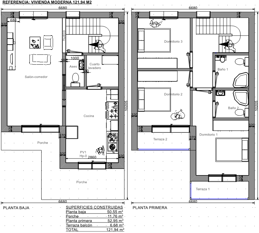 Superficie total construida 121,94 m2.