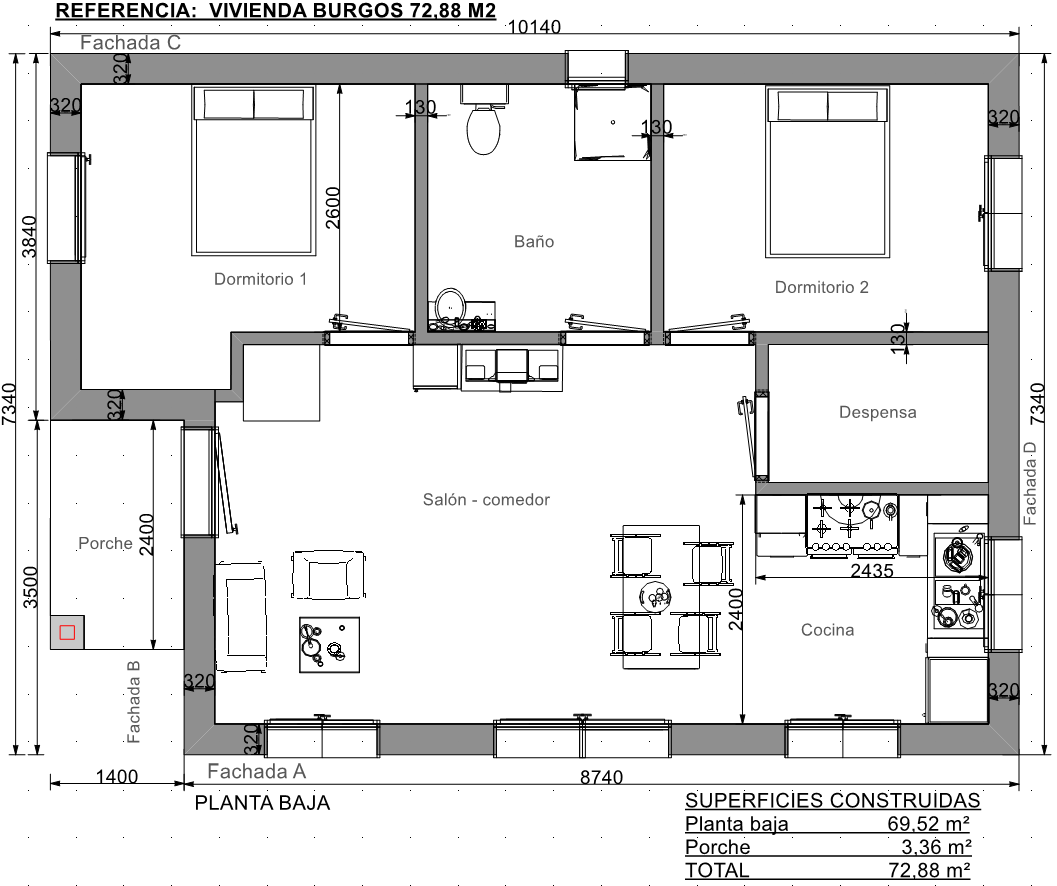 En esta opción, entregamos la casa prefabricada con aislamientos ideales para casas pasivas prefabricadas o edificios de consumo casi nulo (nZEB).