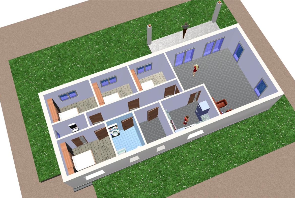 Diseño moderno de esta vivienda prefabricada acabada en hormigón de 4 dormitorios 2 baños y techo a 2 aguas aislado y ventilado, presume de ser l a más eficiente y sostenible.