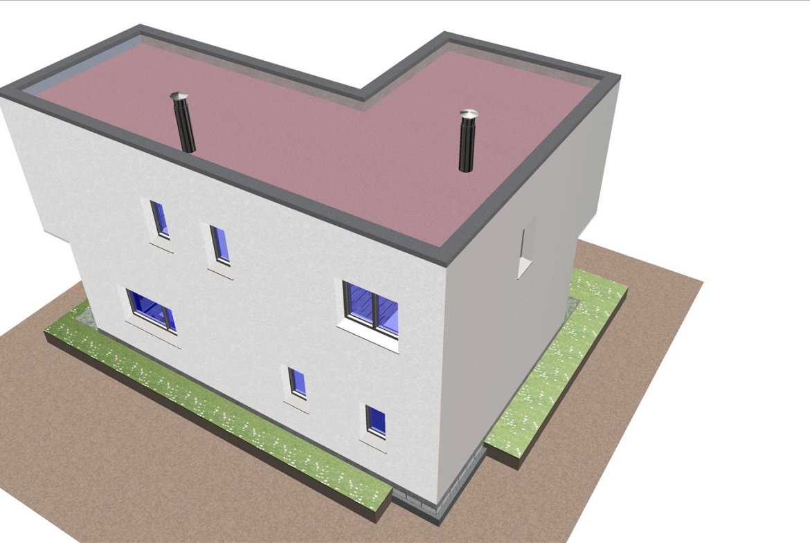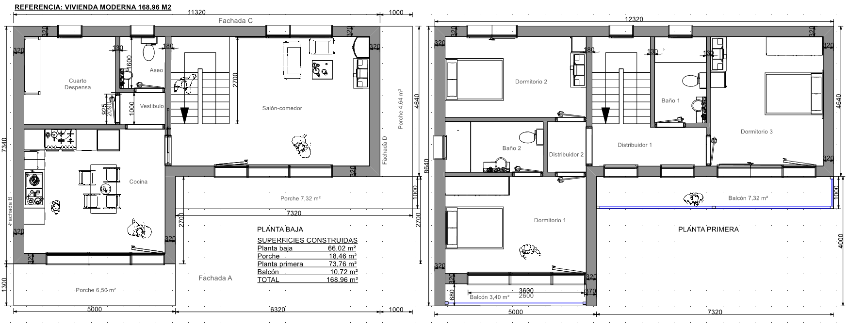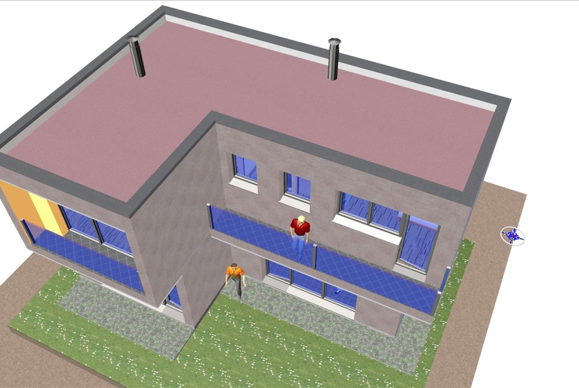 Casa prefabricada perfecta para clientes que buscan un diseño moderno en dos plantas, con porche y terrazas para disfrutar en varias zonas de la vivienda. En esta opción, entregamos la casa prefabricada moderna con la teja puesta, fachadas de hormigón. El envolvente de la fachada con sistema SATE y revestimiento en cemento coloreado.
