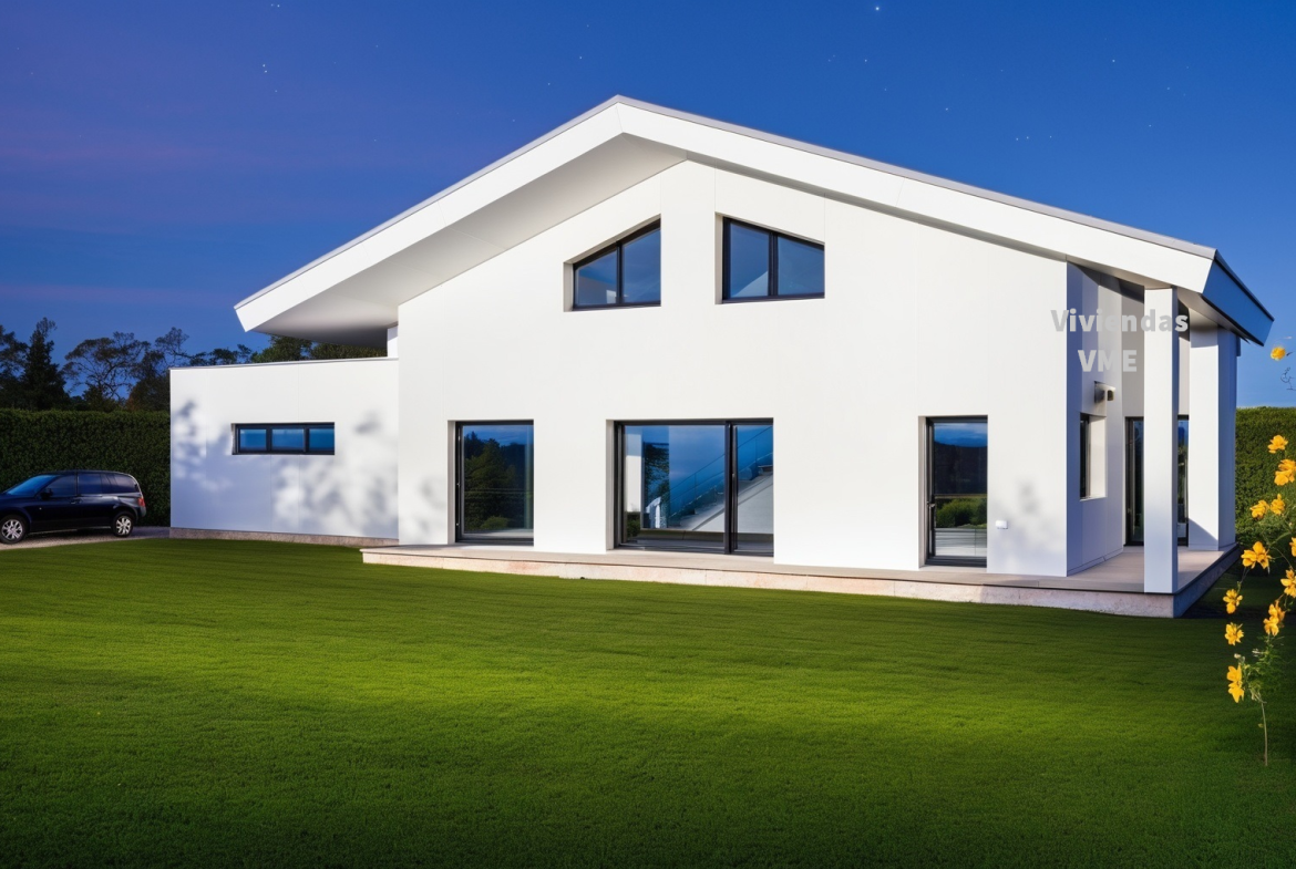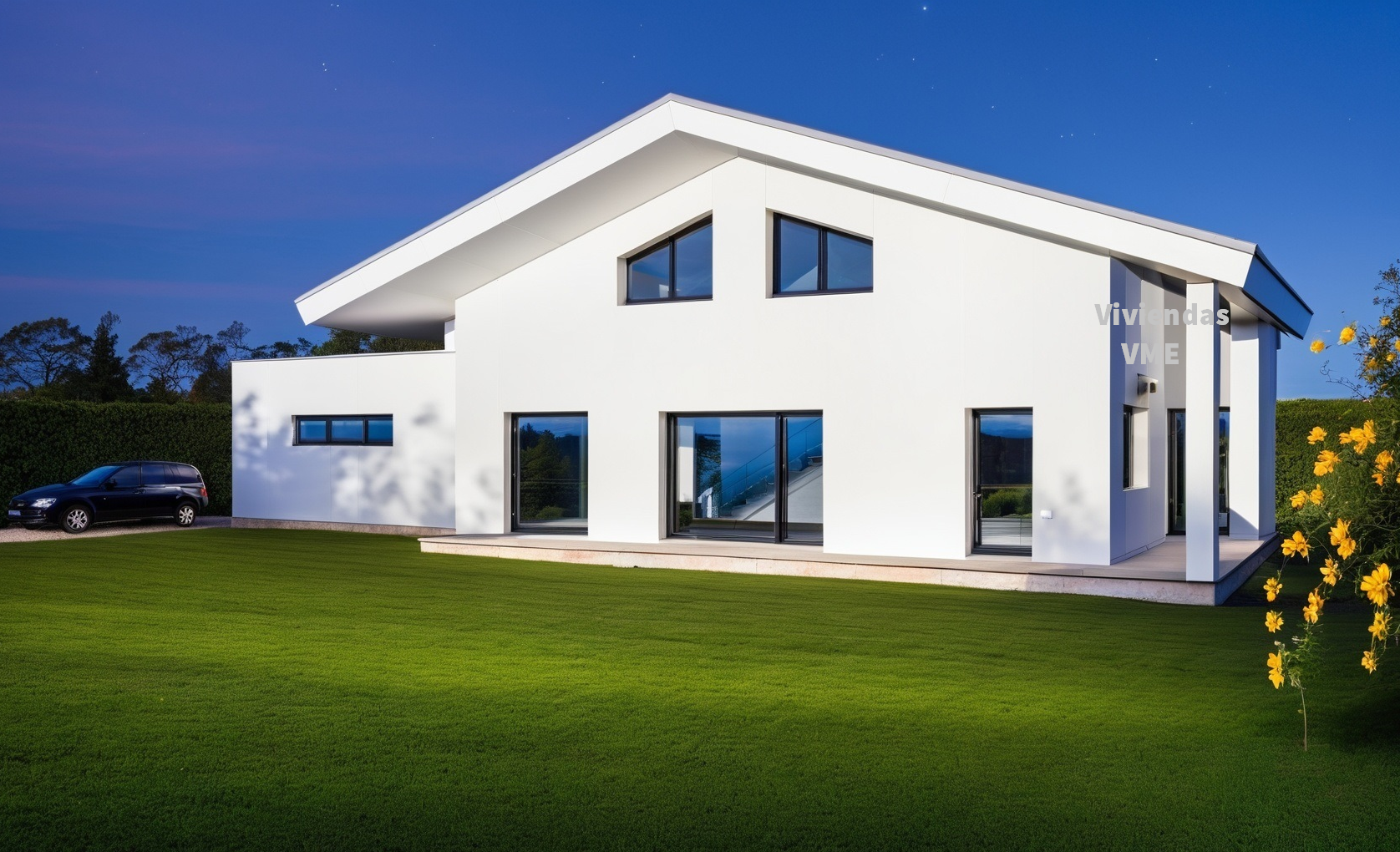 Las casas prefabricadas VME y la vivienda pasiva modelo Soria 262 m2 destacan por ser elaboradas a base de paneles de madera, OSB y acero, revestidas mortero monocapa
