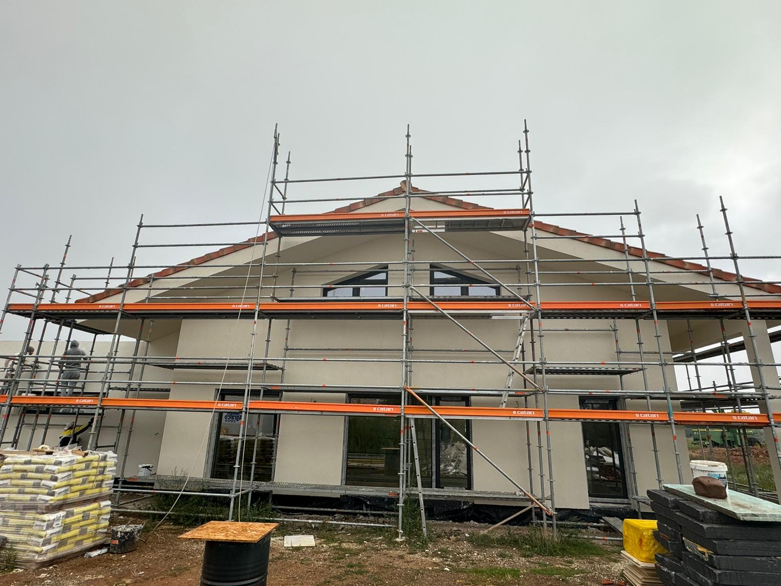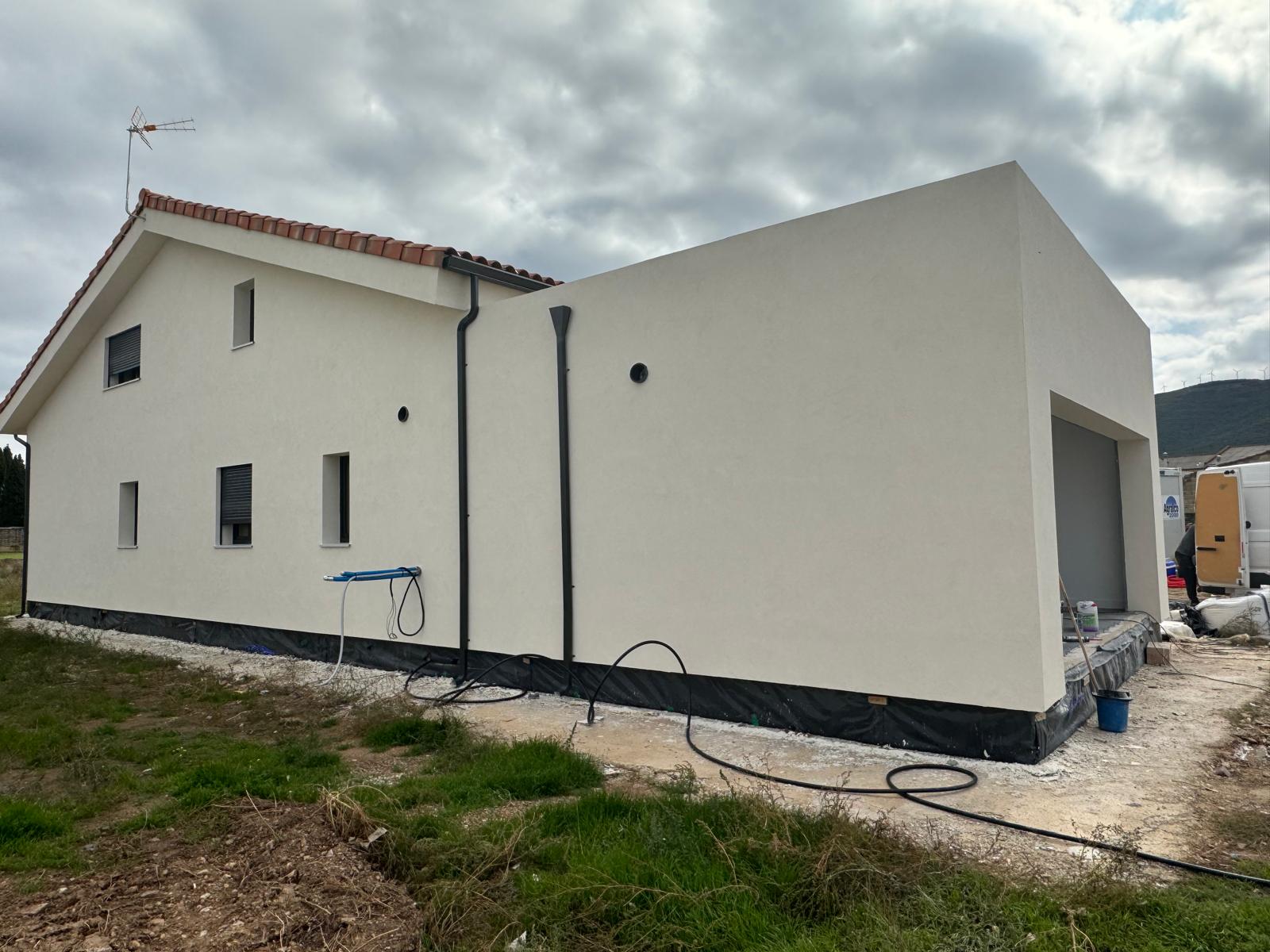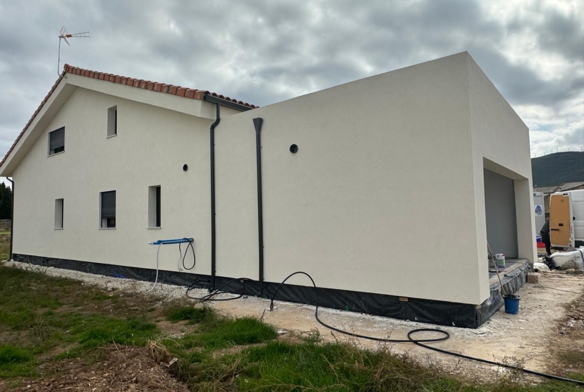 Mortero de enlucido y revoco a base de cemento para fachadas de las casas prefabricadas pasivas aisladas con sistema SATE.