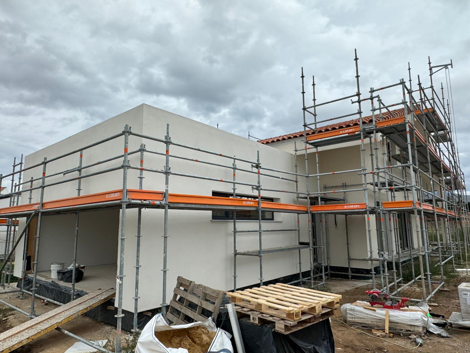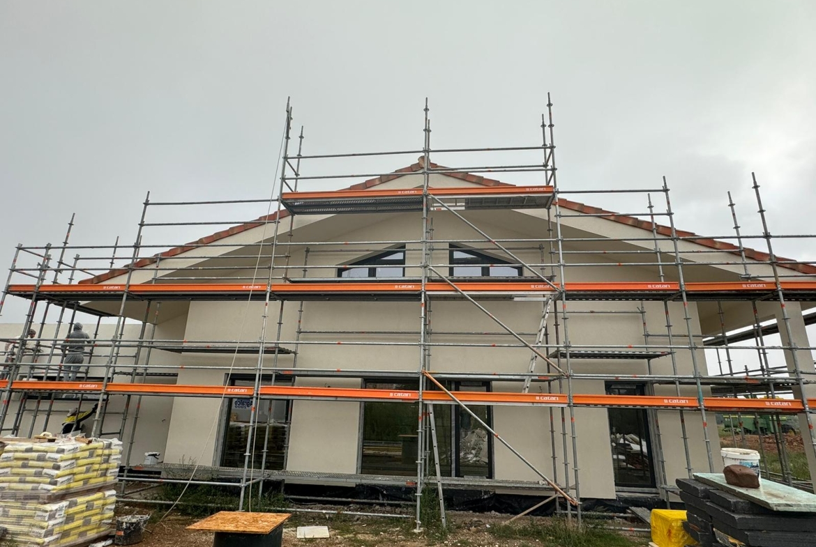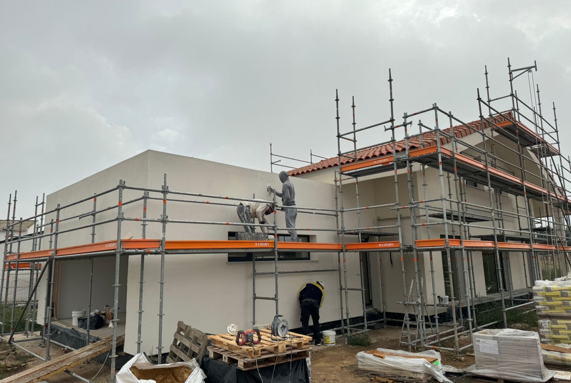 Mortero de enlucido y revoco a base de cemento para fachadas de las casas prefabricadas pasivas aisladas con sistema SATE.