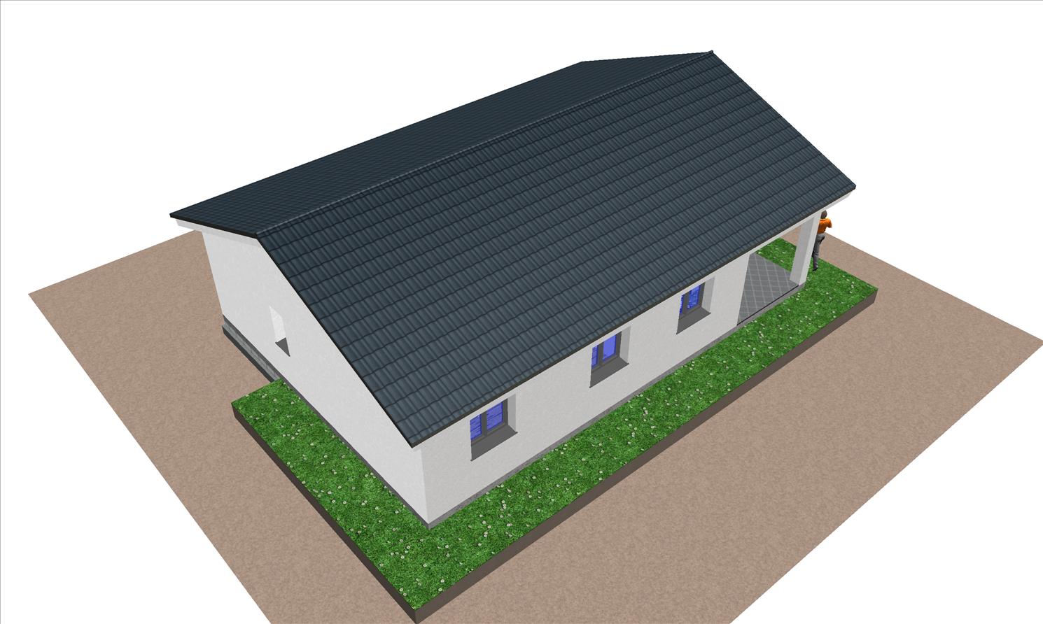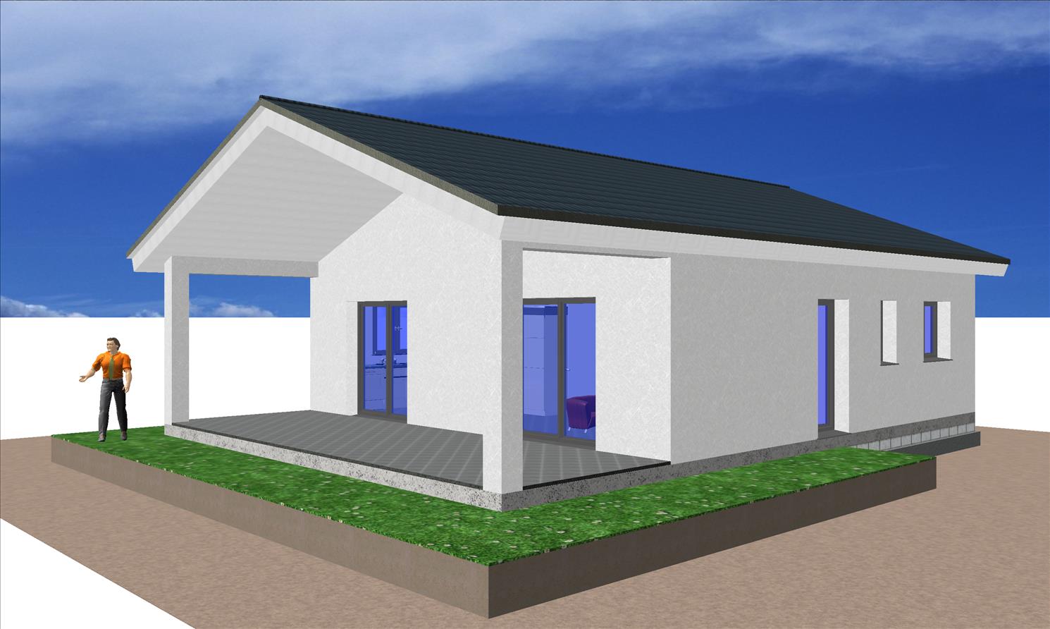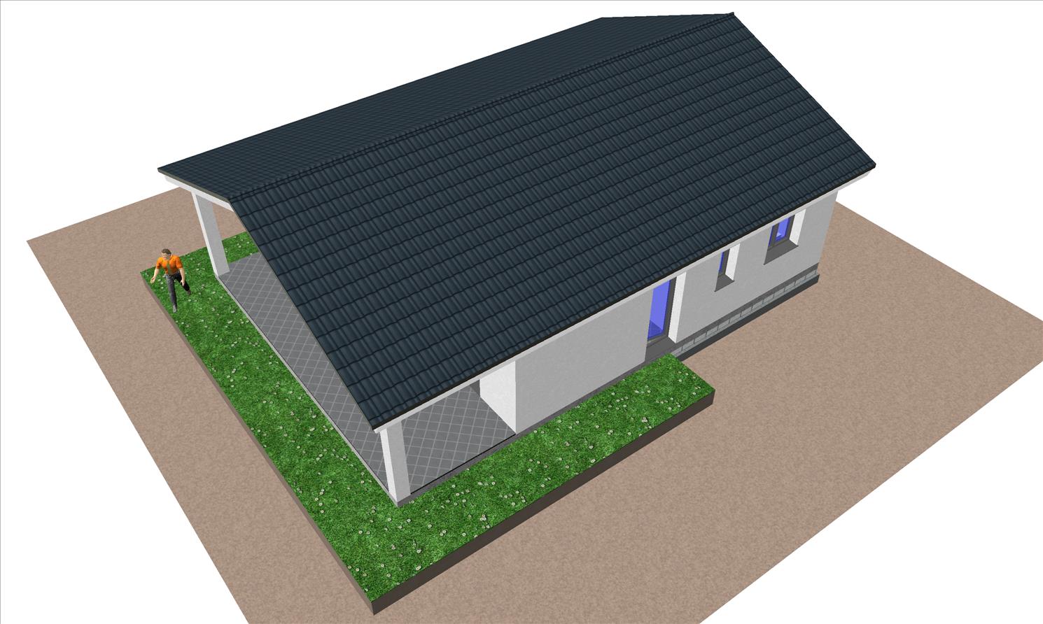 Se trata de una casa prefabricada de arquitectura tradicional y tiene un porche moderno acabado en mortero monocapa.