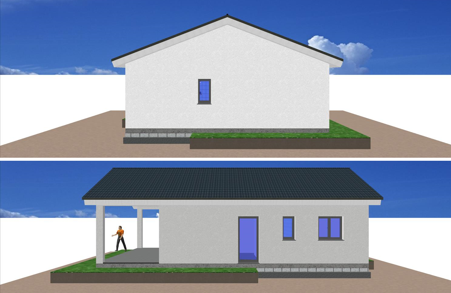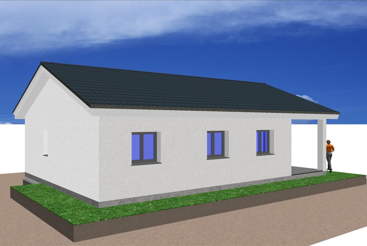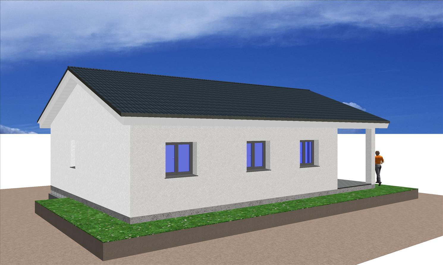 Se trata de una casa prefabricada de arquitectura tradicional y tiene un porche moderno acabado en mortero monocapa.
