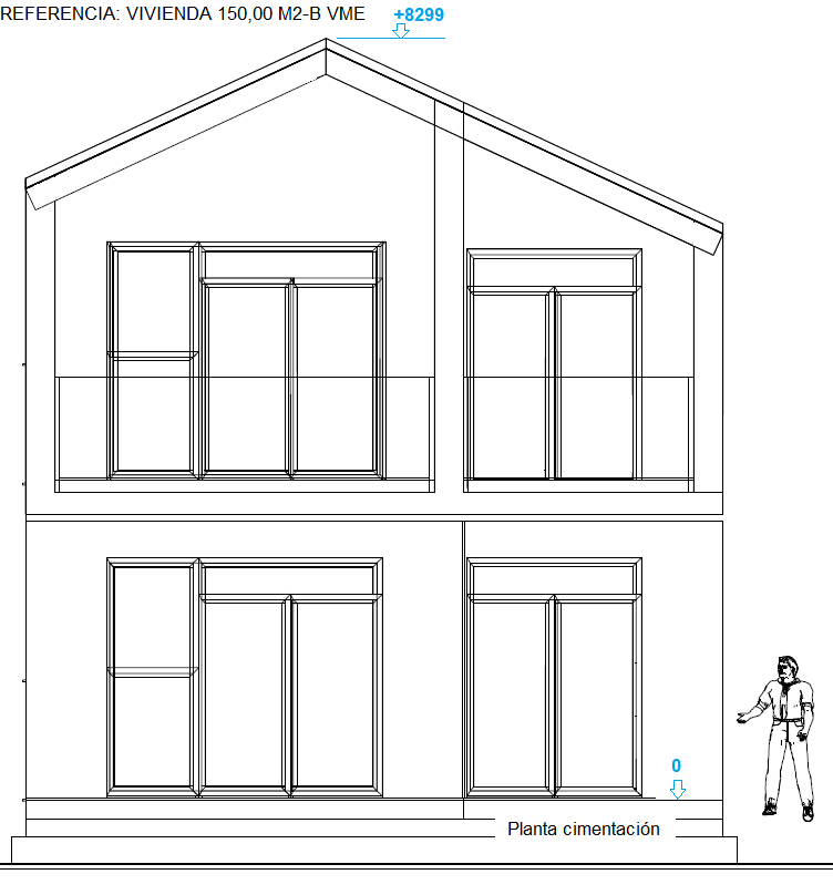 Chalet 150m2 modelo de casa estilo tradicional con fachada de hormigón:
