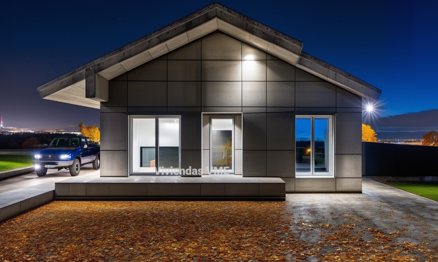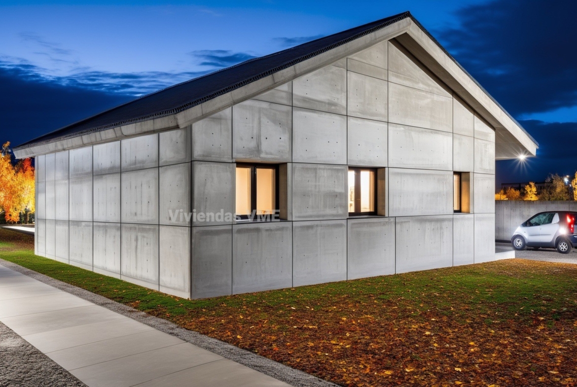 Una vivienda VME de alta eficiencia energética, con acabados en hormigón y cemento, casa que se caracteriza por ser duraderas.