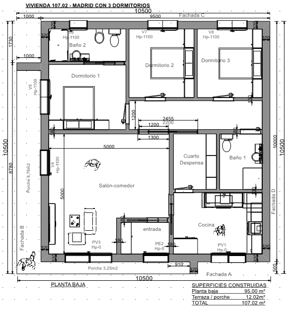 Construcción de casas de Alta Calidad. Modelo Madrid 107,02 construidos.