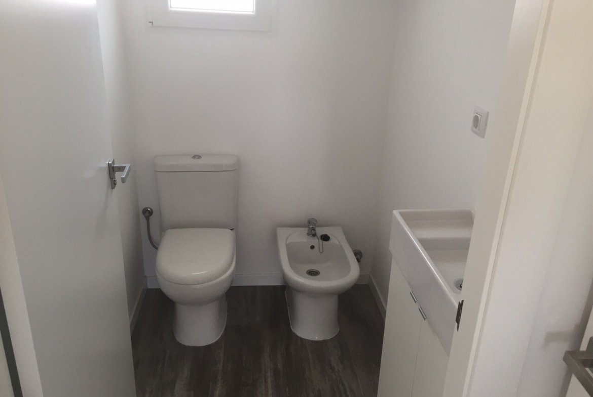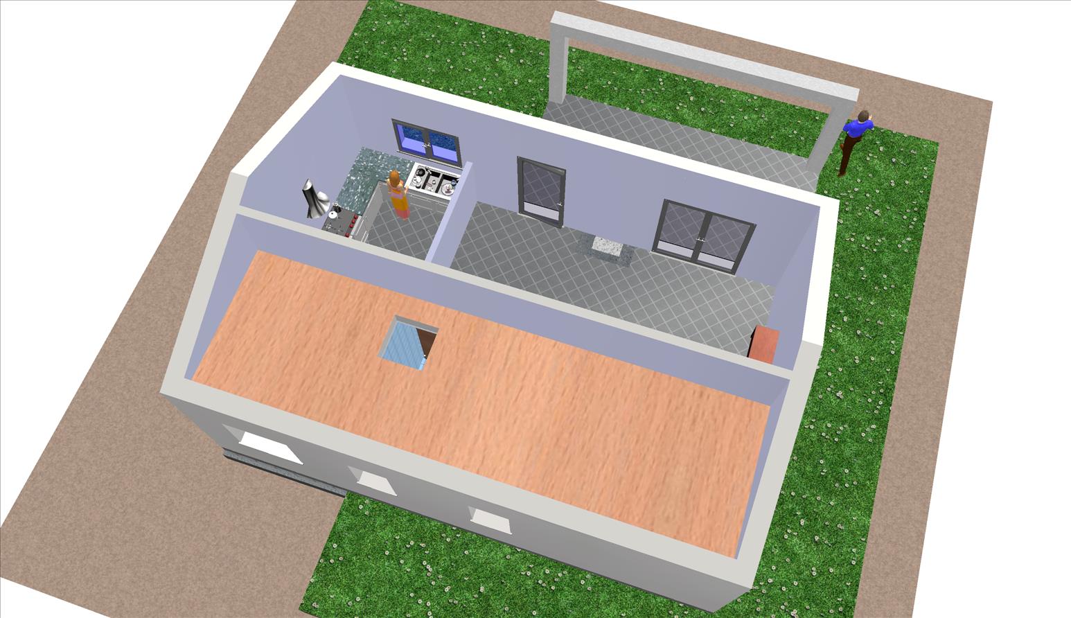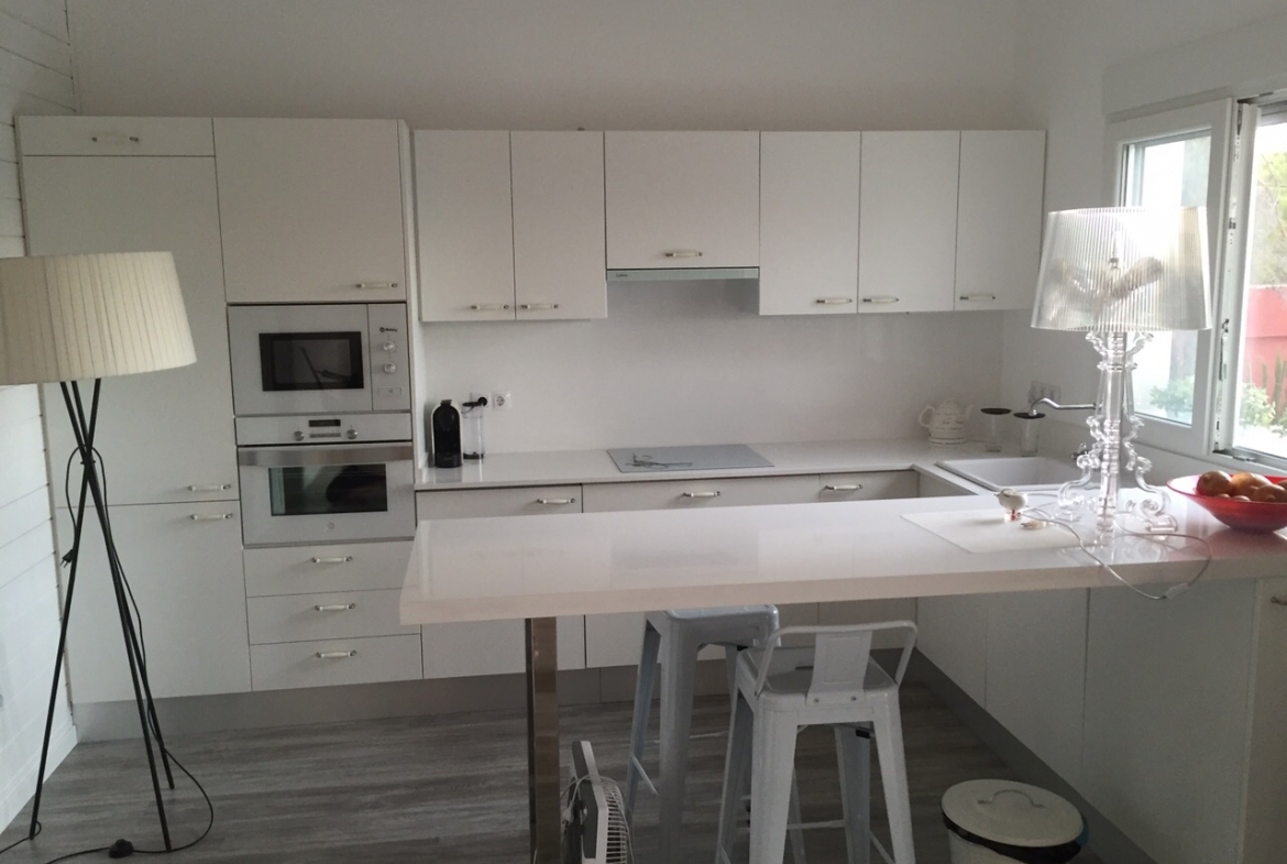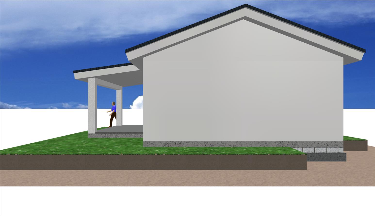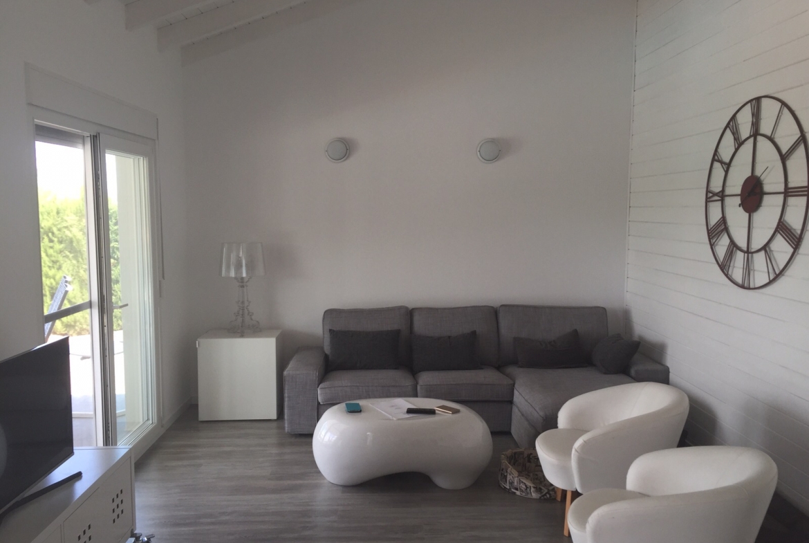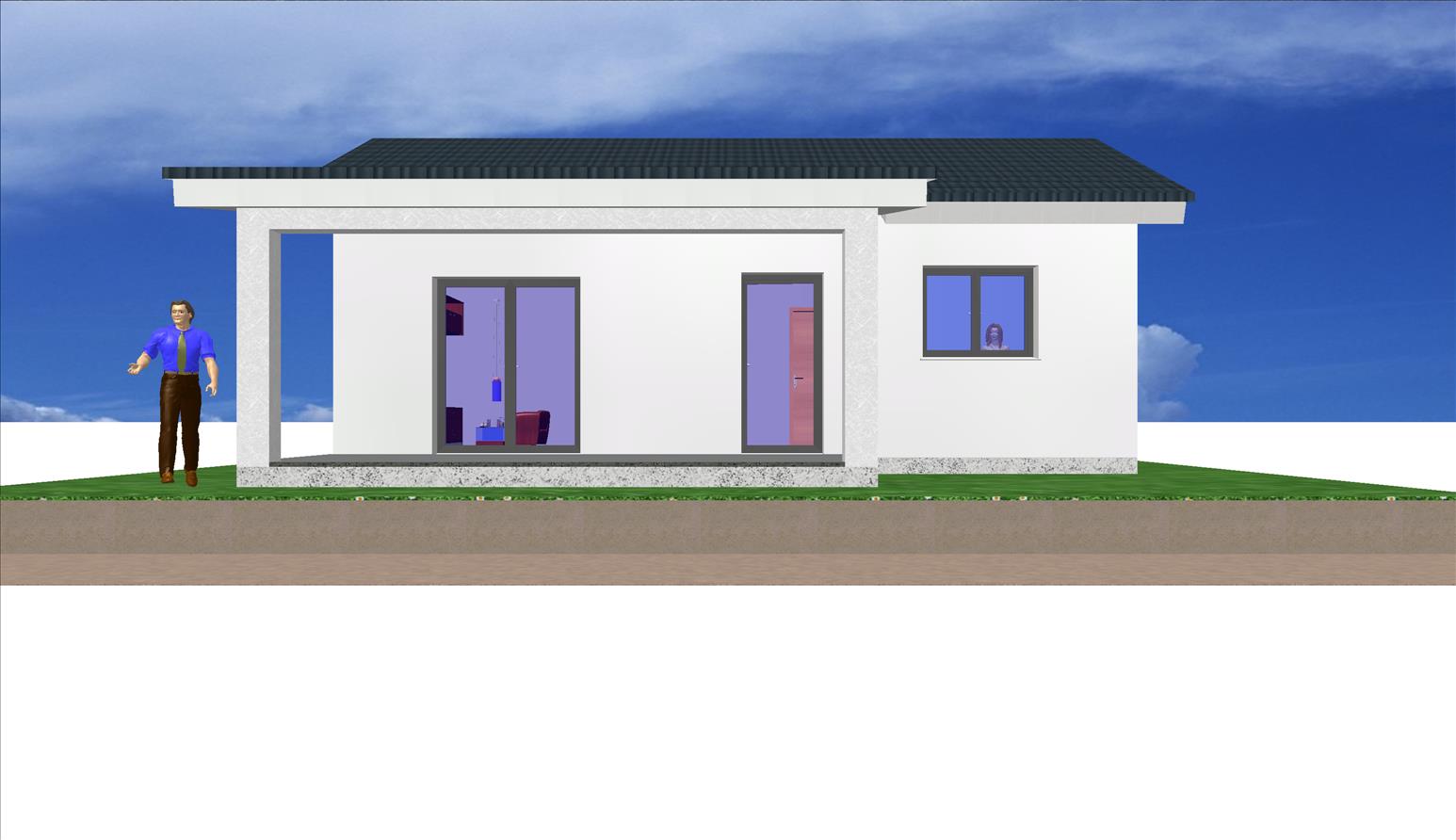 Se trata de una casa prefabricada de diseño totalmente personalizada en planta baja con dos dormitorios, dos baños, un amplio salón, cocina y porche.