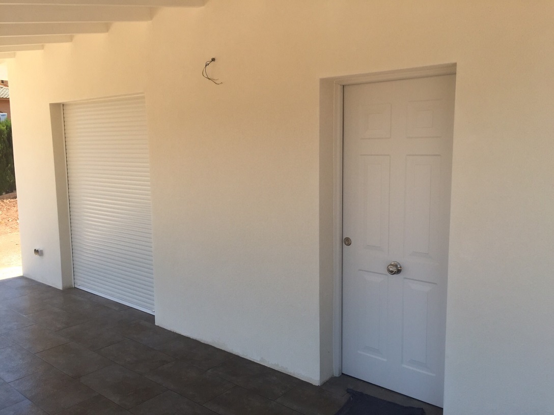 Muros exteriores doble aislados tipo casa pasiva, la envolvente de la fachada exterior con SATE, acabado en hormigón y mortero de cemento coloreado.