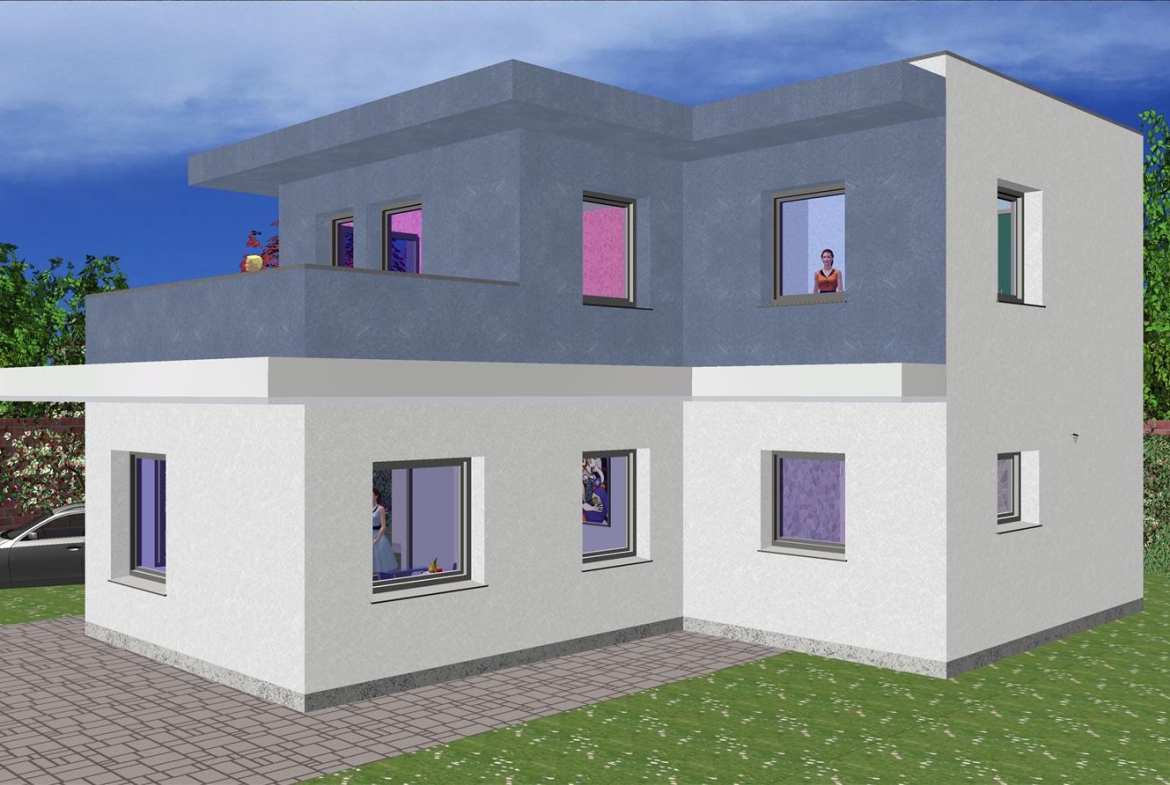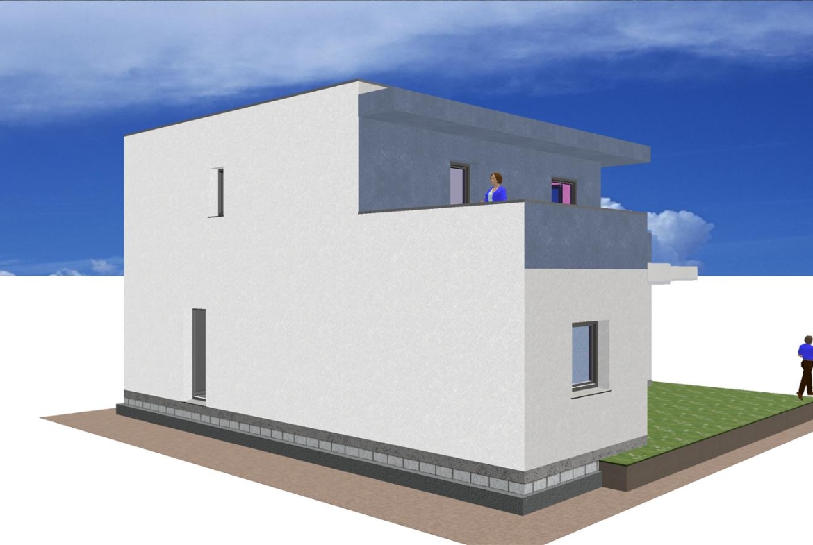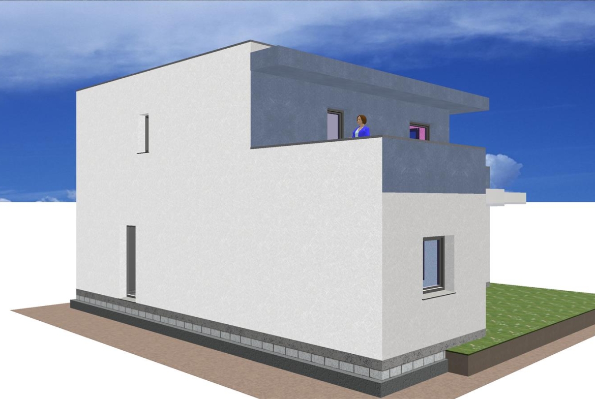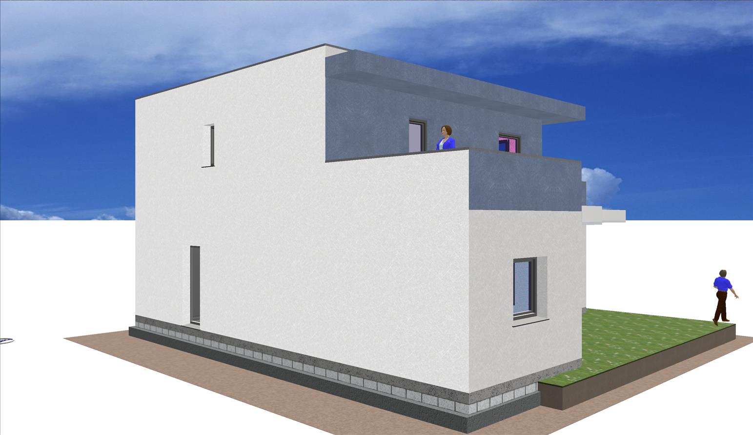 Construimos la casa prefabricada moderna con revestimiento exterior de la cubierta, acabado final en fachadas de hormigón con sistema SATE y revestimiento en cemento coloreado.