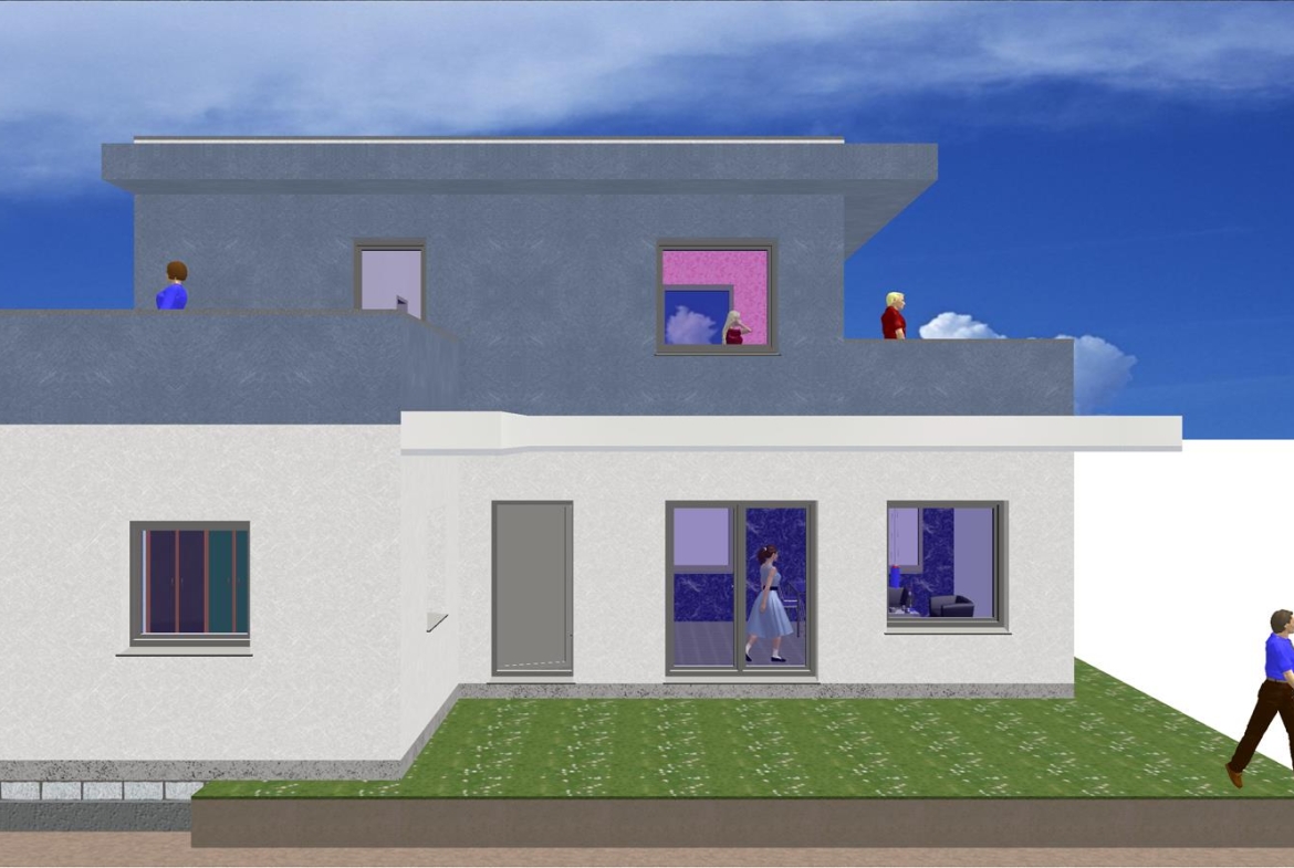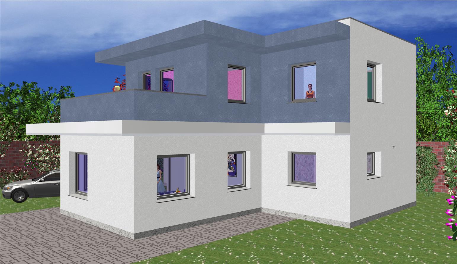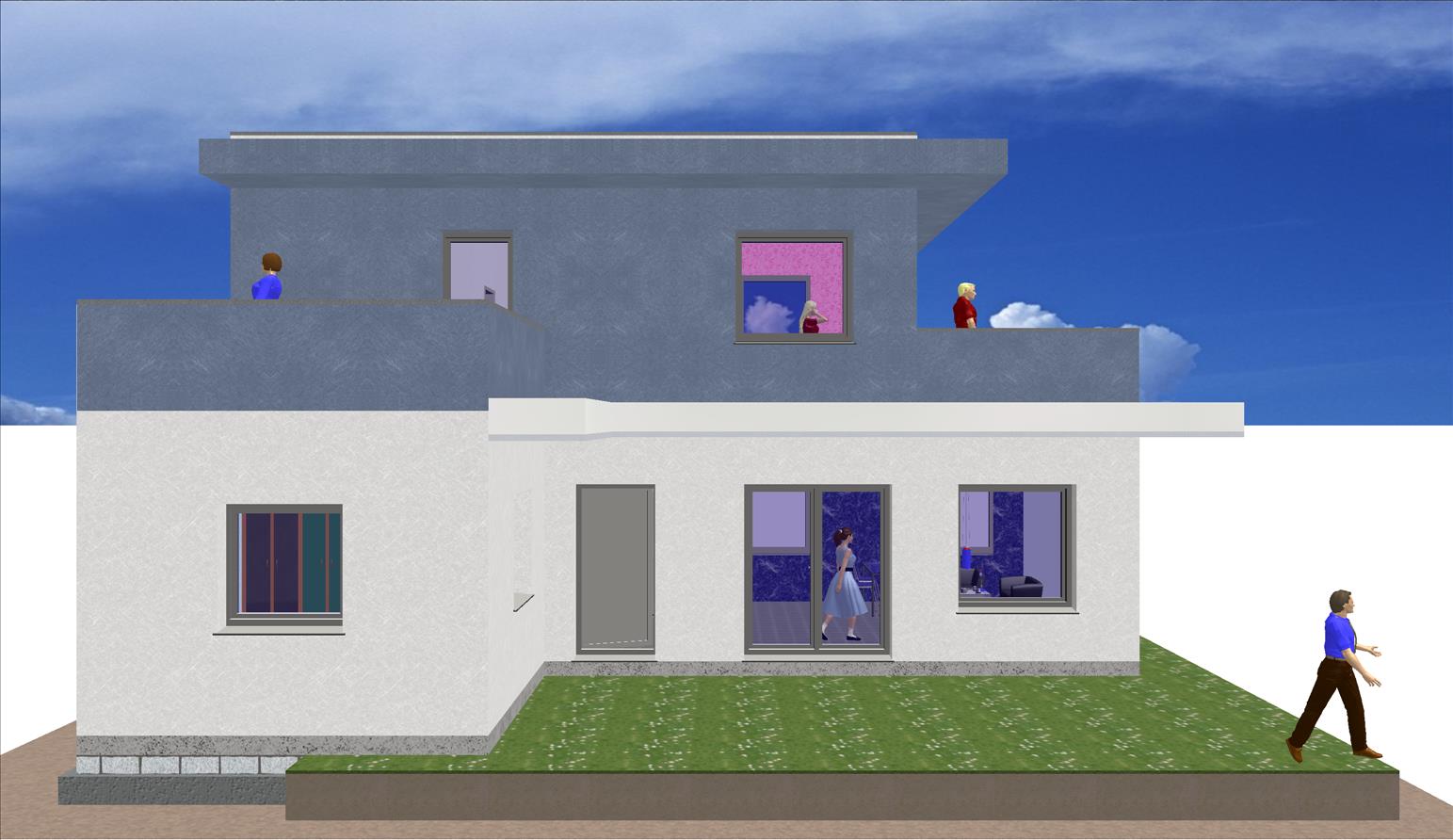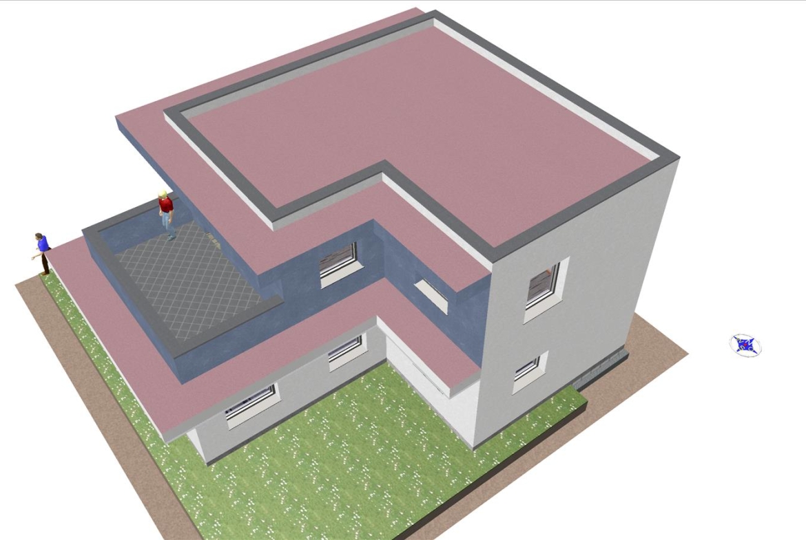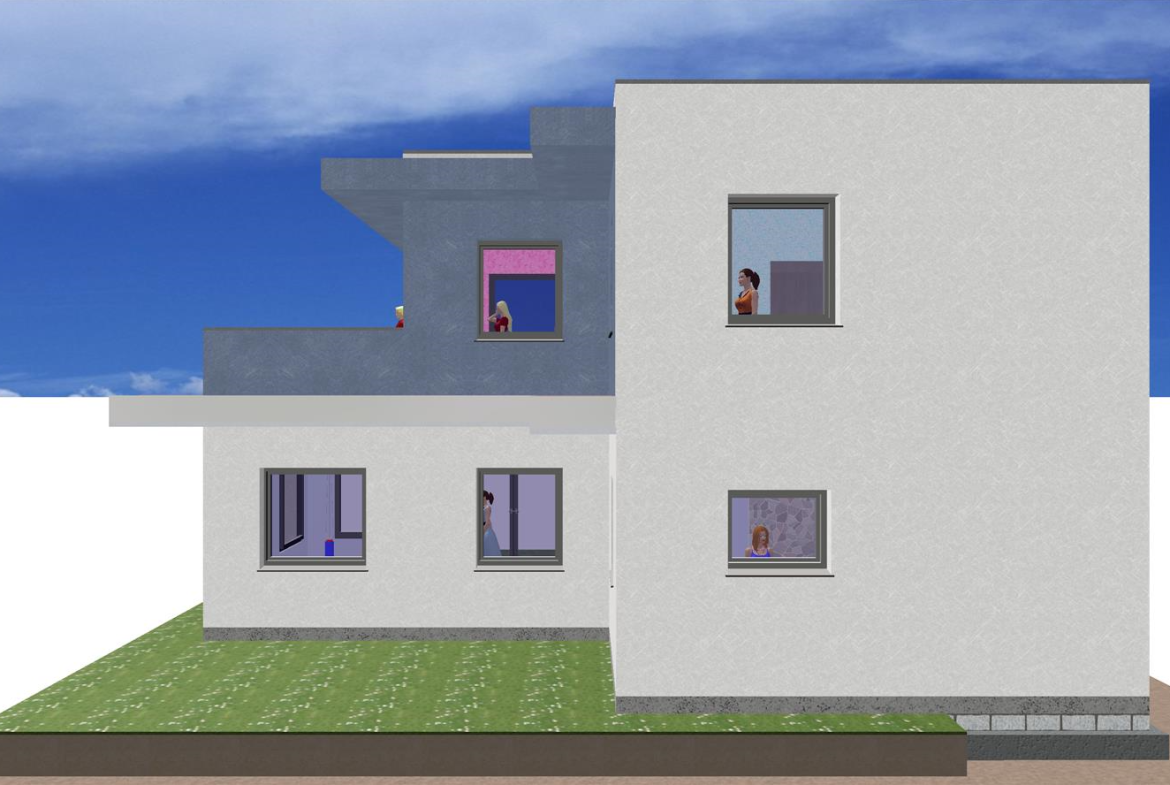 Construimos la casa prefabricada moderna con revestimiento exterior de la cubierta, acabado final en fachadas de hormigón con sistema SATE y revestimiento en cemento coloreado.