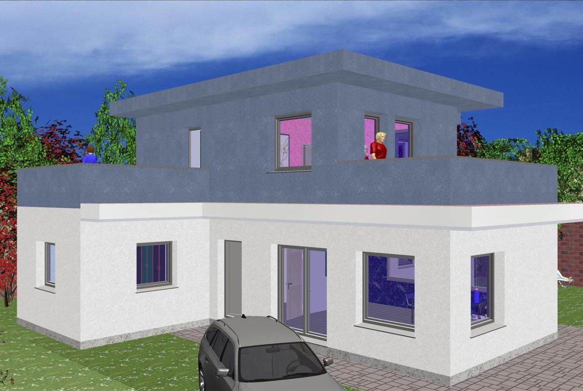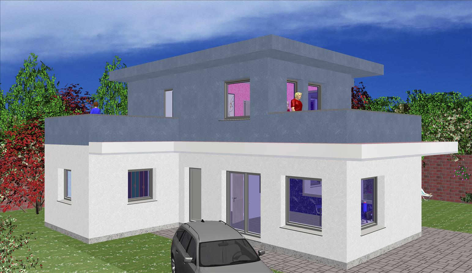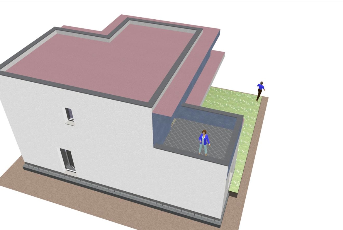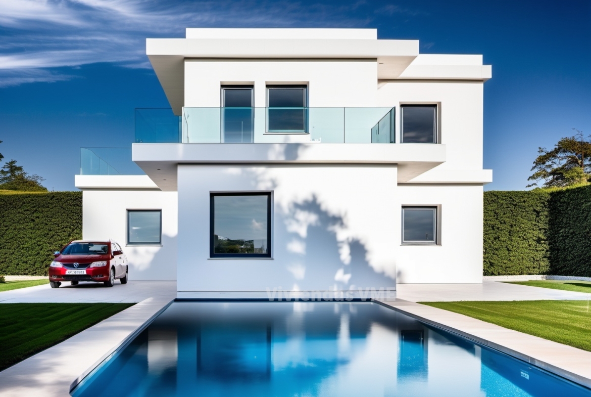Construimos la casa prefabricada moderna con revestimiento exterior de la cubierta, acabado final en fachadas de hormigón con sistema SATE y revestimiento en cemento coloreado.